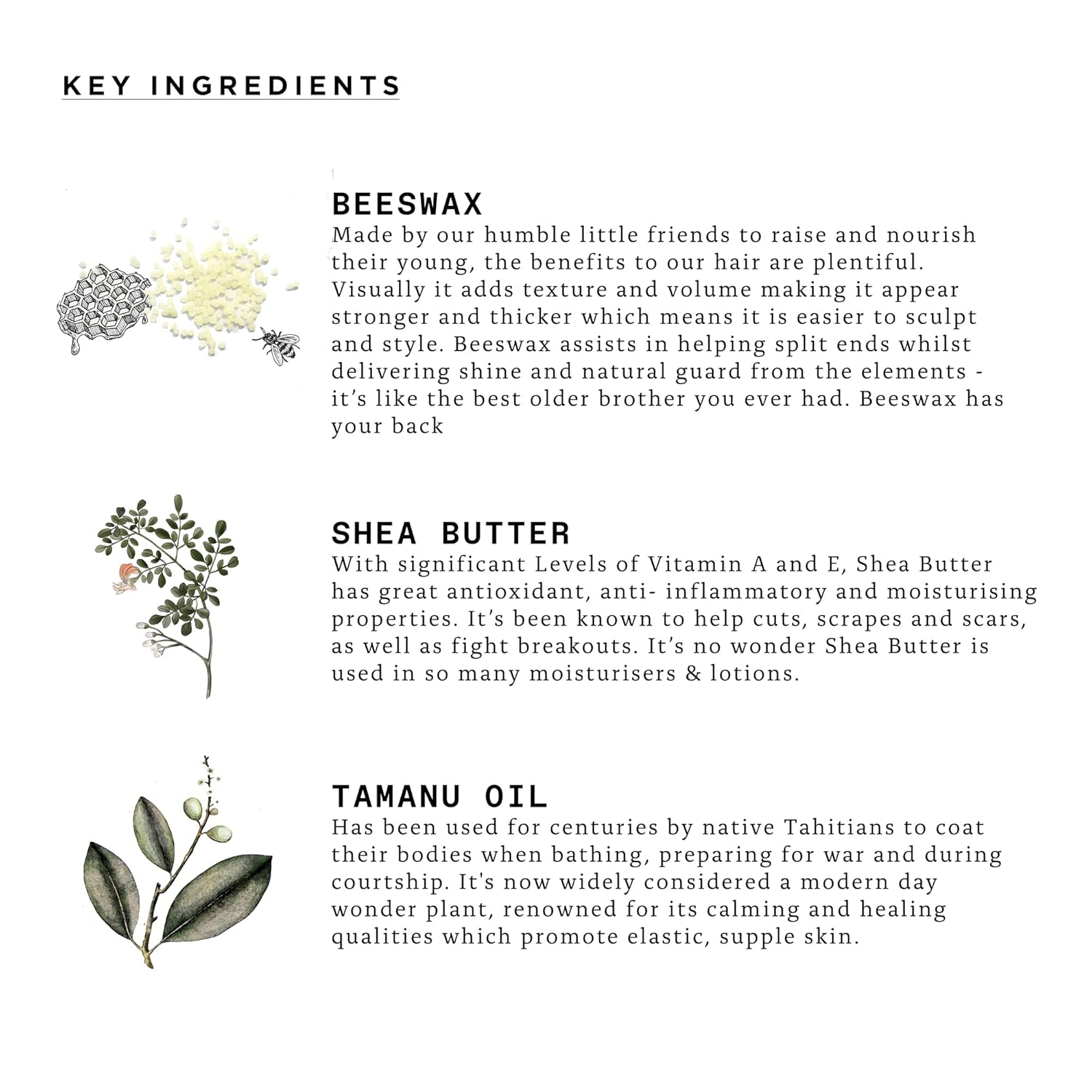 - ALL NATURAL INGREDIENTS | Combination beard balm of Beeswax, Shea Butter, and Tamanu Oil that delivers a strong hold, whilst conditioning your beard.