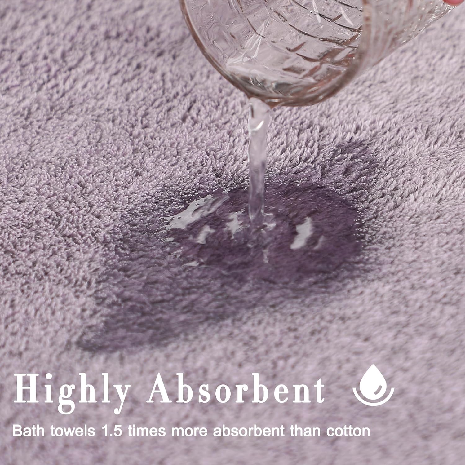 - Absorbent & Quick Drying: Great GSM and large bath towel surface area can provide better water absorption. Plush bath towels are breathable and quick drying , saving drying time and avoiding wet stains and odor. Our super absorbent towels dry skin with gentle pressure to absorb moisture instead of rubbing skin to remove moisture, which will protect our skin.