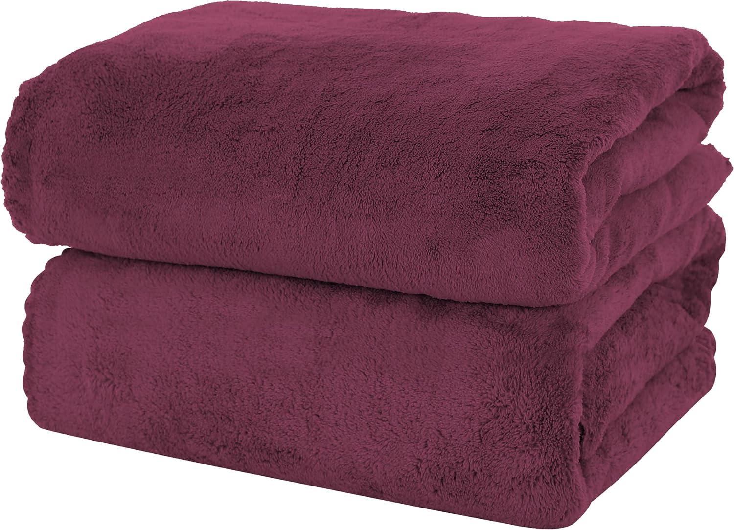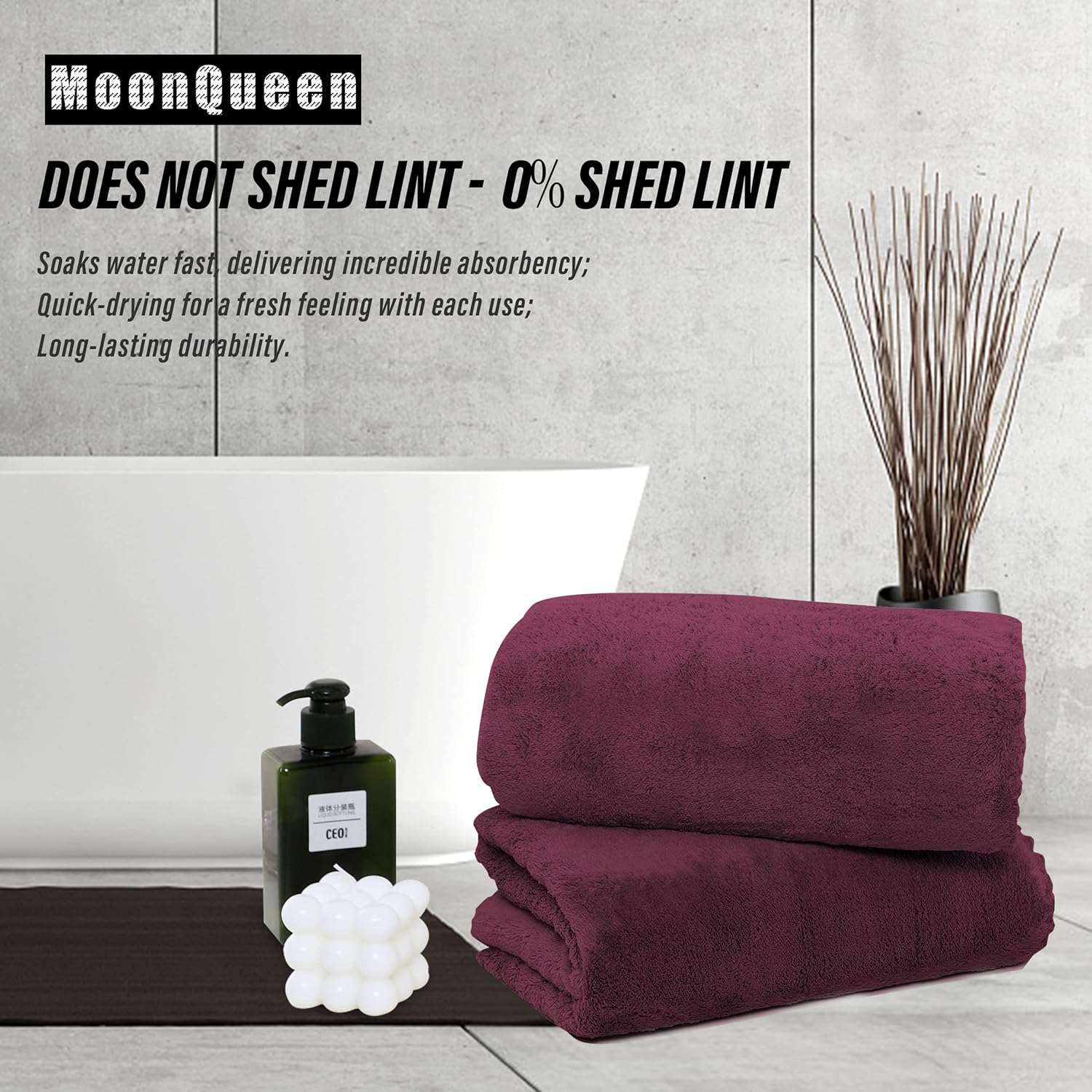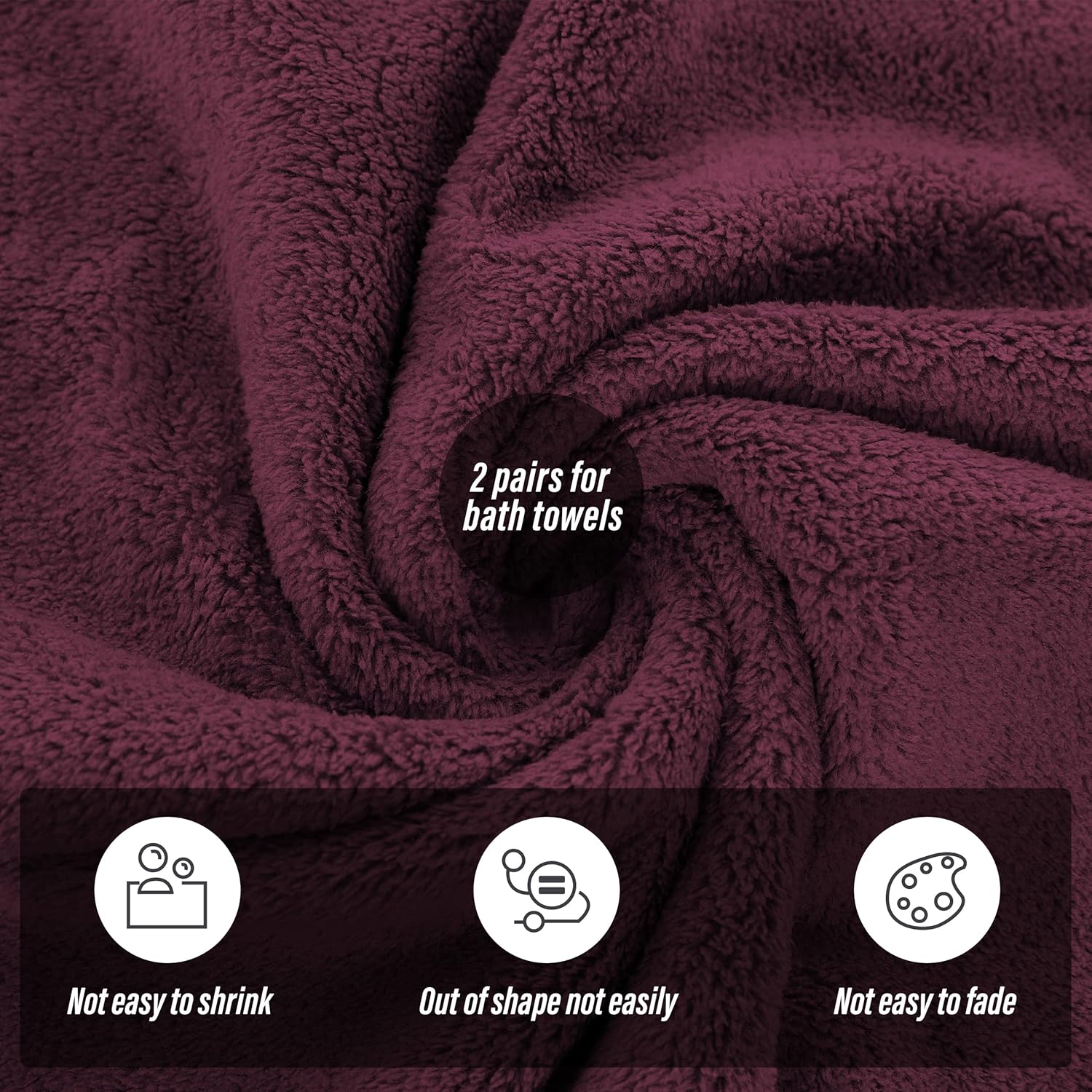 MOONQUEEN 2 Pack Premium Bath Towel Set - Quick Drying - Microfiber Coral Velvet Highly Absorbent Towels - Multipurpose Use as Bath Fitness, Bathroom, Shower, Sports, Yoga Towel (Burgundy)