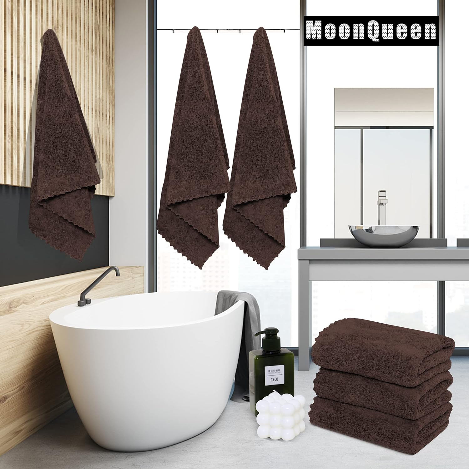 MOONQUEEN 2 Pack Premium Bath Towel Set - Quick Drying - Microfiber Coral Velvet Highly Absorbent Towels - Multipurpose Use as Bath Fitness, Bathroom, Shower, Sports, Yoga Towel (Wood Brown)