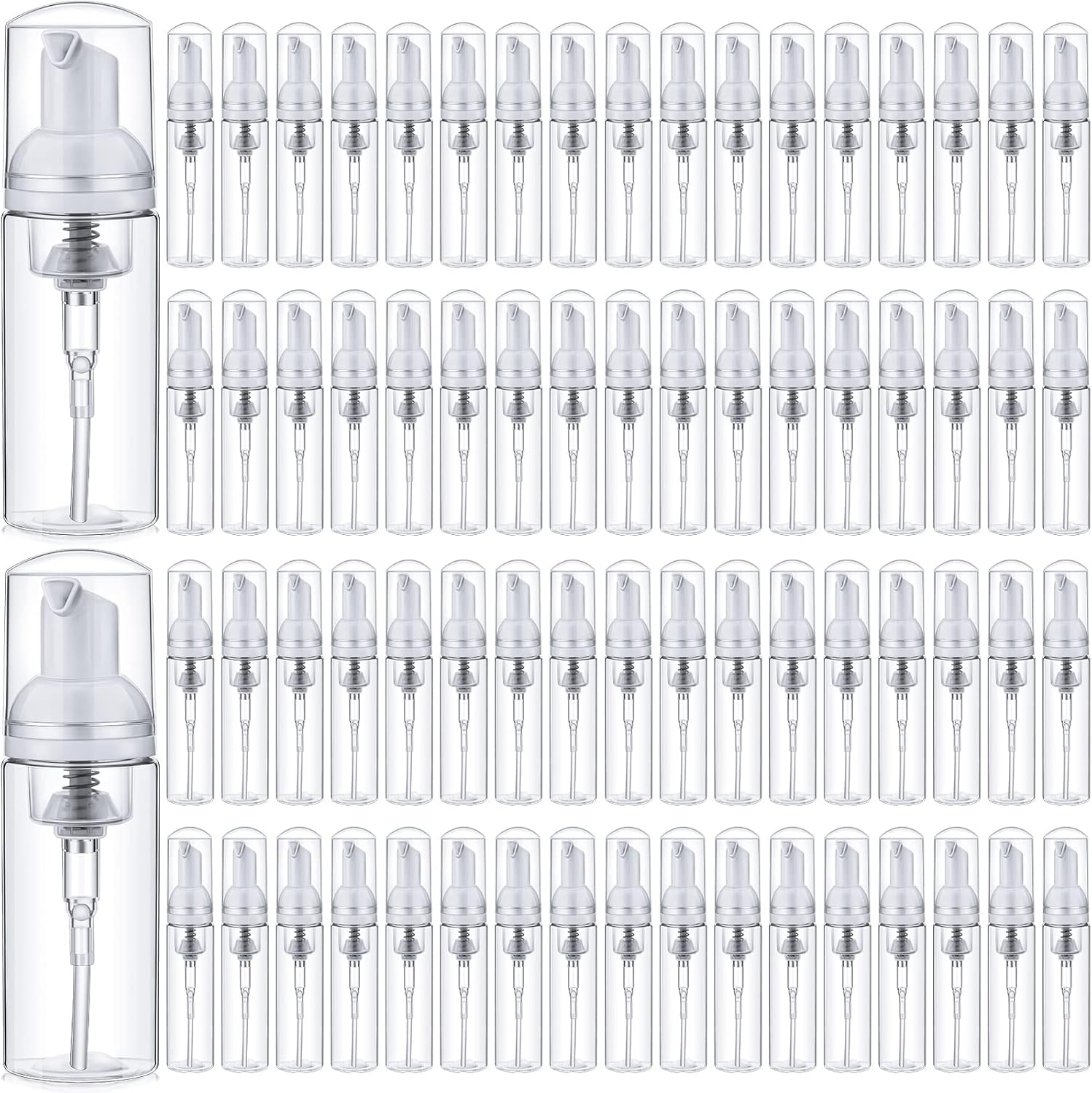 70 Pcs 2 oz Plastic Foam Soap Dispensers Refillable Lash Shampoo Bottles with Pump Mini Eyelash Cleaning Foam Bottle Dispenser for Refillable Travel Cosmetics (Transparent)