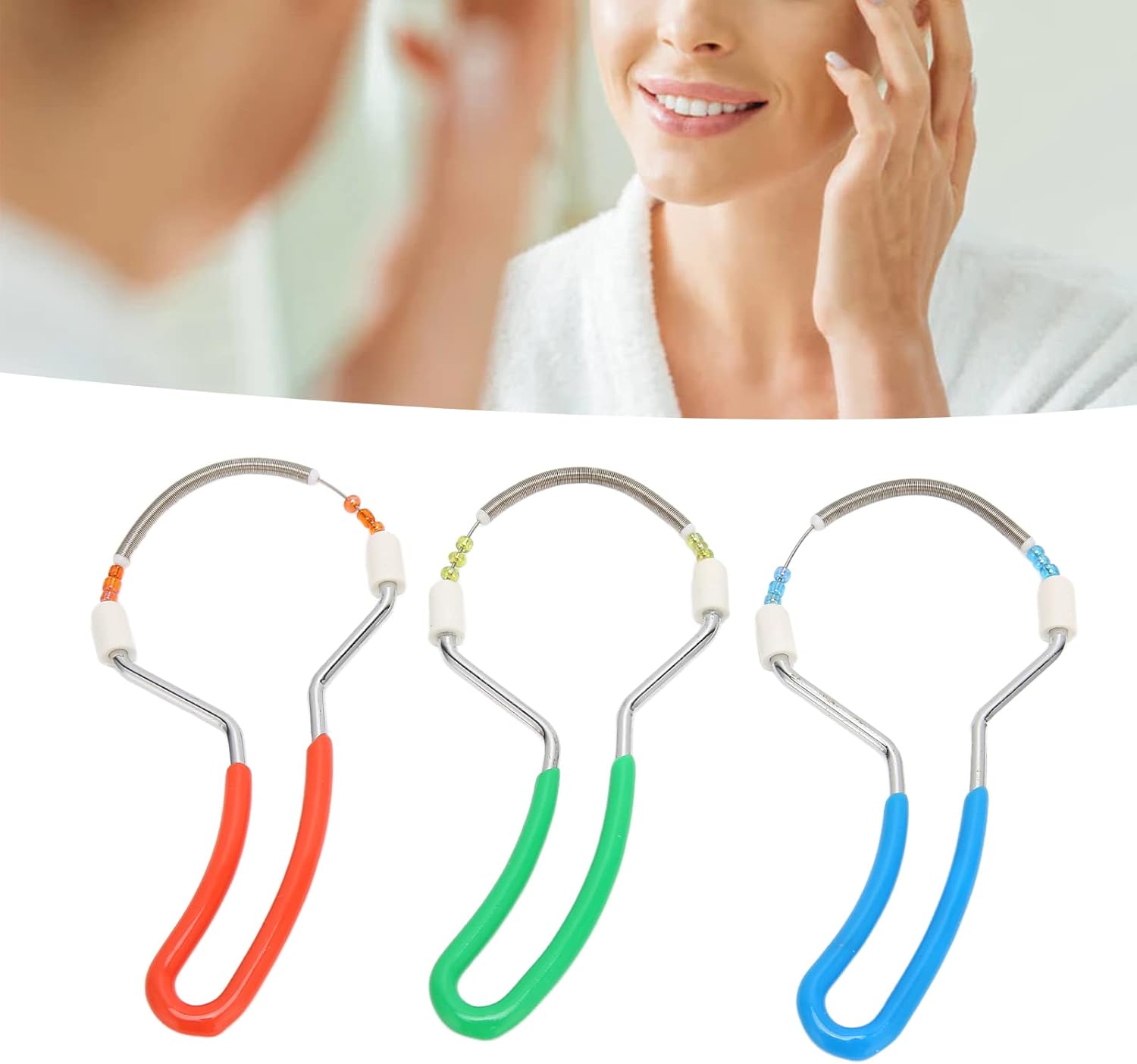 HURRISE 3pcs Hair Remover, Women Spring Threading Epilator, Portable Face Lips Hair Removal Plastic Spring Device for Face Lip Hair Removal