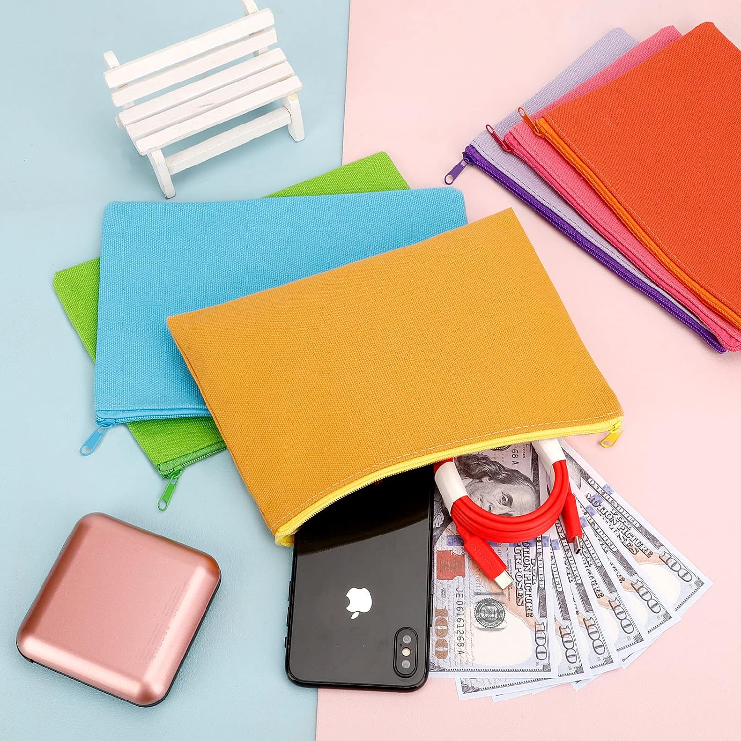 12 Pieces Cotton Canvas Makeup Bag, Multipurpose Cosmetic Bag with Zipper Travel Toiletry Pouch, Blank DIY Craft Bag (Multicolored B, L)