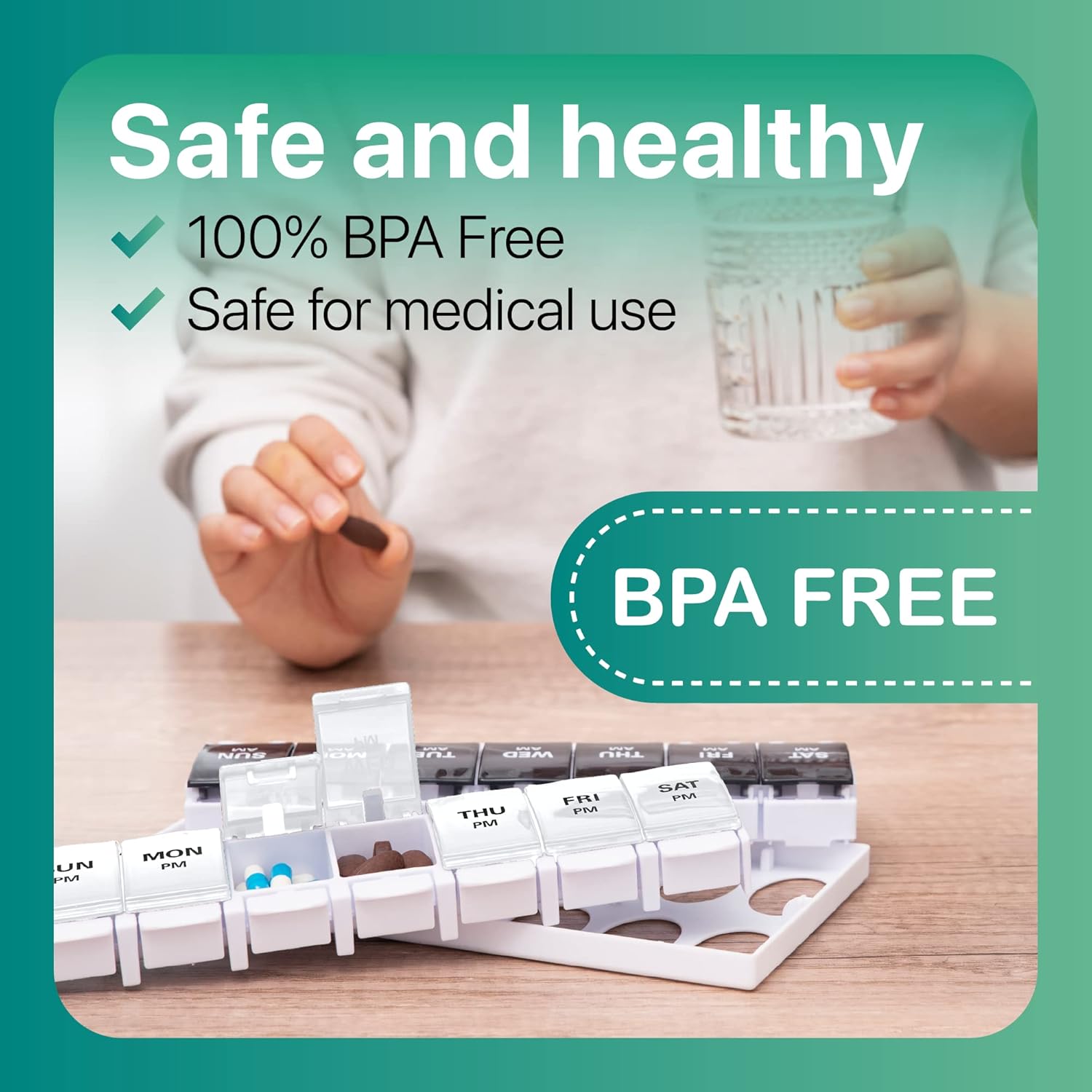 - Health Friendly: Made from food-grade quality material, ensuring safe and hygienic use. The transparent case and AM/PM marks make it easy to distinguish and organize medicines effectively.