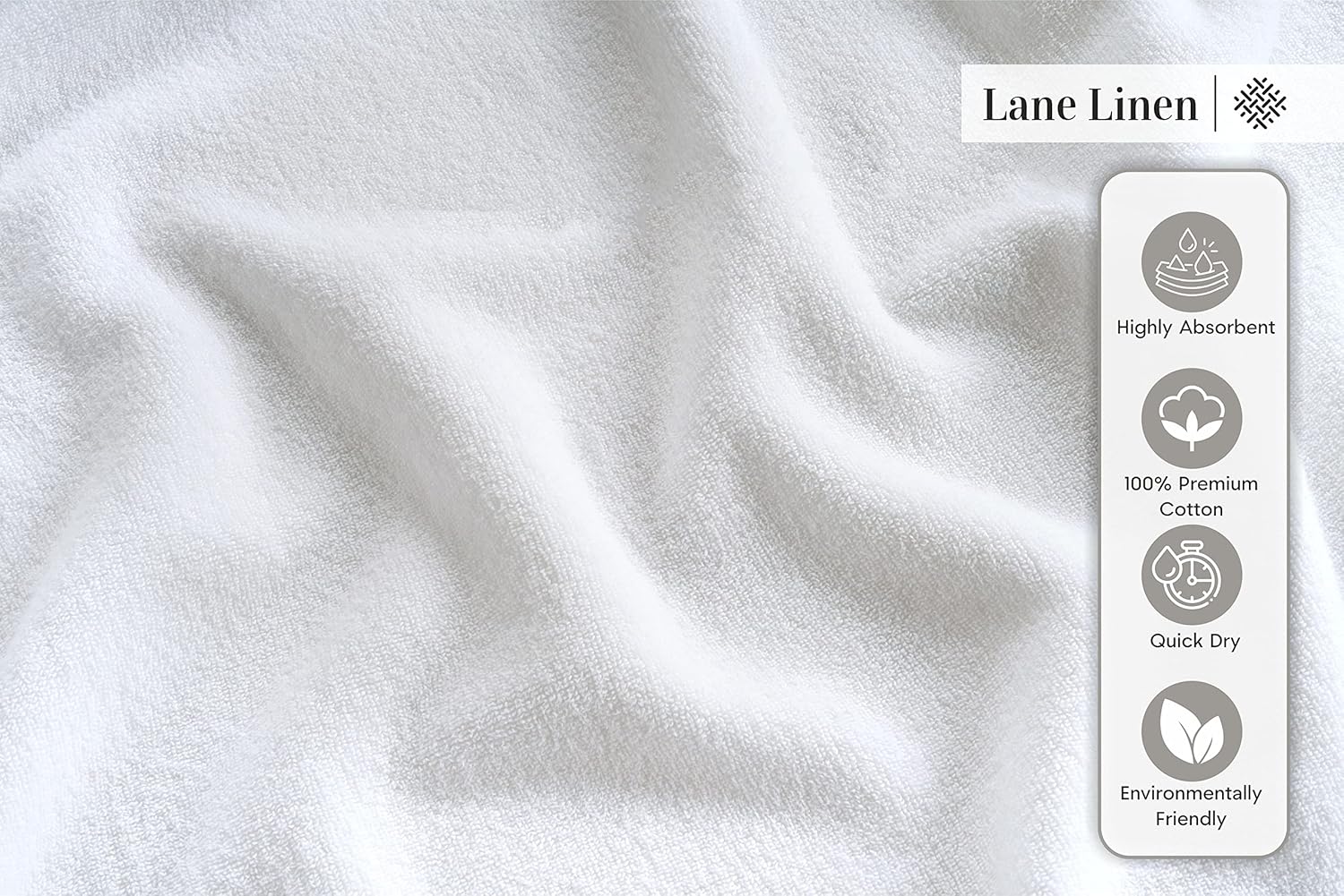 LANE LINEN 6 Pack Hand Towels (16"x28") - Spa & Hotel Quality - 100% Cotton, Ring Spun - Quick Dry, Ultra Soft & Absorbent - Used for Salon, Gym, Bathroom, Beauty - Pre Shrunk - White Hand Towels Set