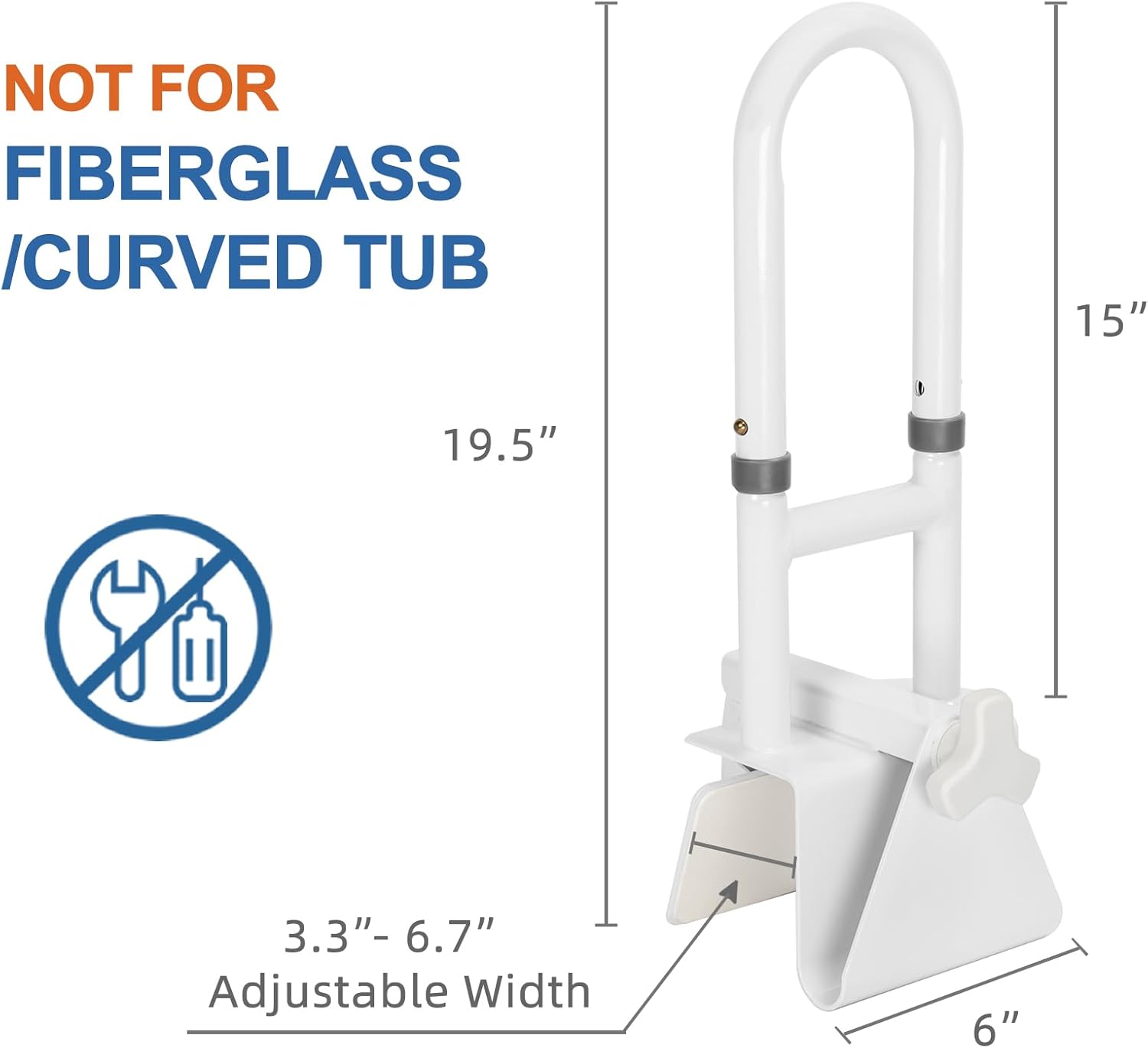 - Adjustable Width: Features security locking mechanism, the bathtub safety rail is adjustable in width from 3.3" to 6.7". NOTE: pls measure the bathtub width before purchase and make sure tub wall is straight. Thanks to the portable and flexible design, it can be untightened and relocated effortlessly. NOT SUGGEST for fiberglass bathtubs, tub with rounded rim, curved tub.