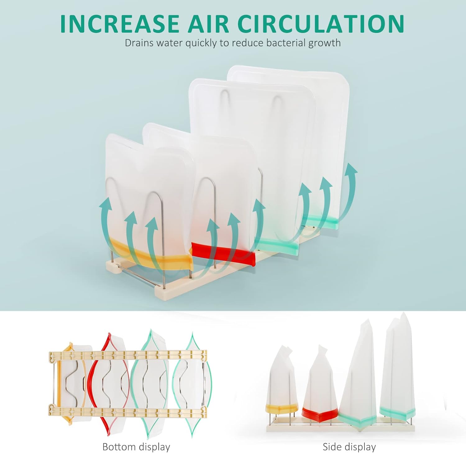- ✨【Multi-Functional Drying Rack】Besides drying bags, you can also use it as a glass drying rack, a reusable freezer bag drying rack, a kitchen glove drying rack, and a baby bottle drying rack. It can also be used to organize dishes, dinnerware, and cutting boards