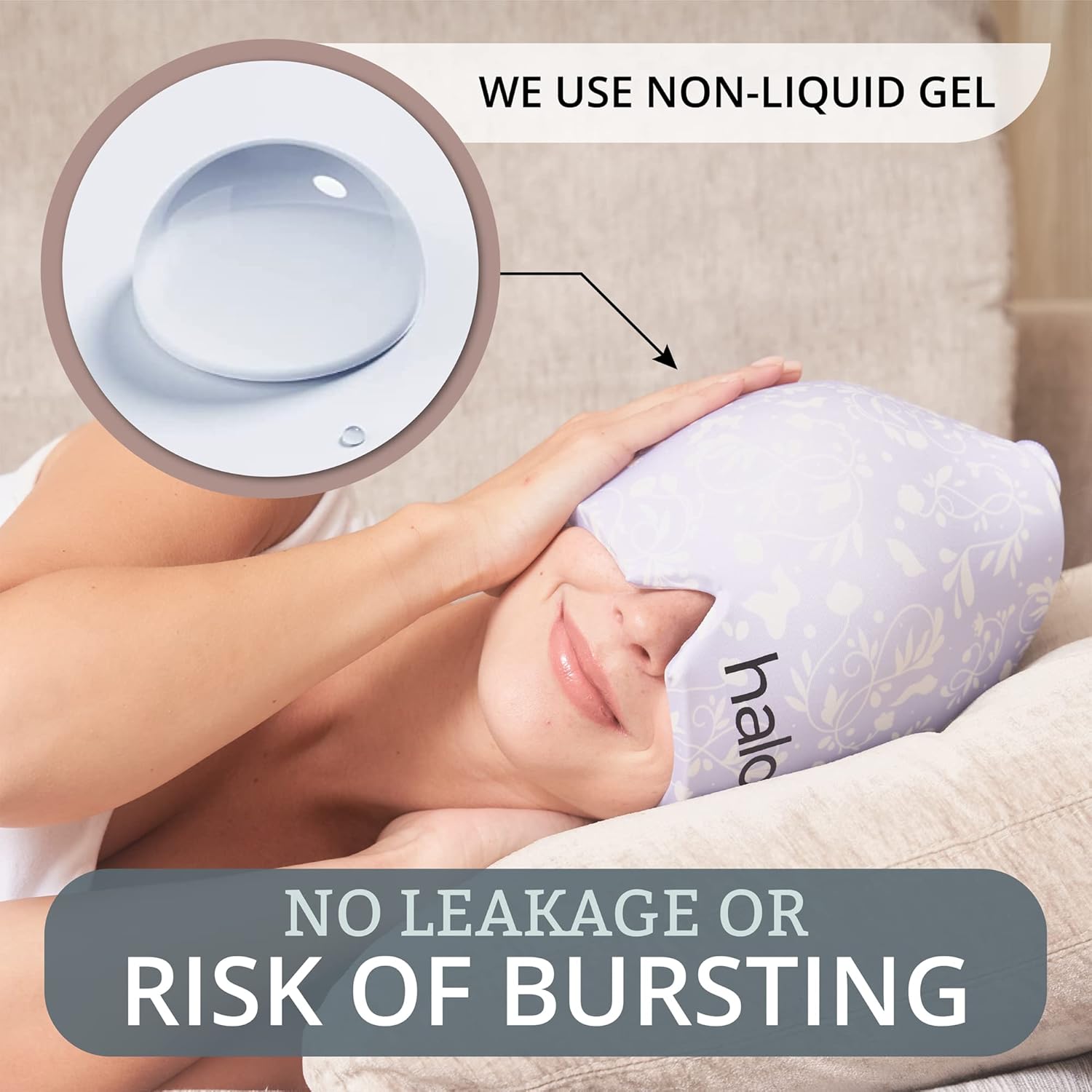 - { The Power of Cold Therapy } When your head is pounding, you need a cooling ice hat that lasts longer than regular liquid ice packs and doesn't leave your head wet! The MyHalos sinus pressure relief mask can be worn as a migraine ice head wrap or ice pack head wrap.