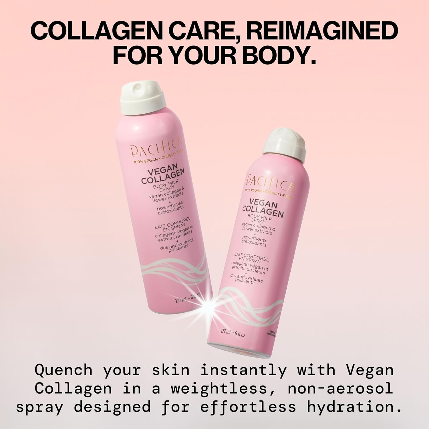 - CLEAN, VEGAN FORMULA: 100% vegan and cruelty-free body lotion spray, formulated without parabens, phthalates, sulfates, mineral oil or talc. The non-aerosol pump uses no chemical propellants, and the bottle is recyclable. Indulge in effective hydration that aligns with your clean beauty values – no compromises.