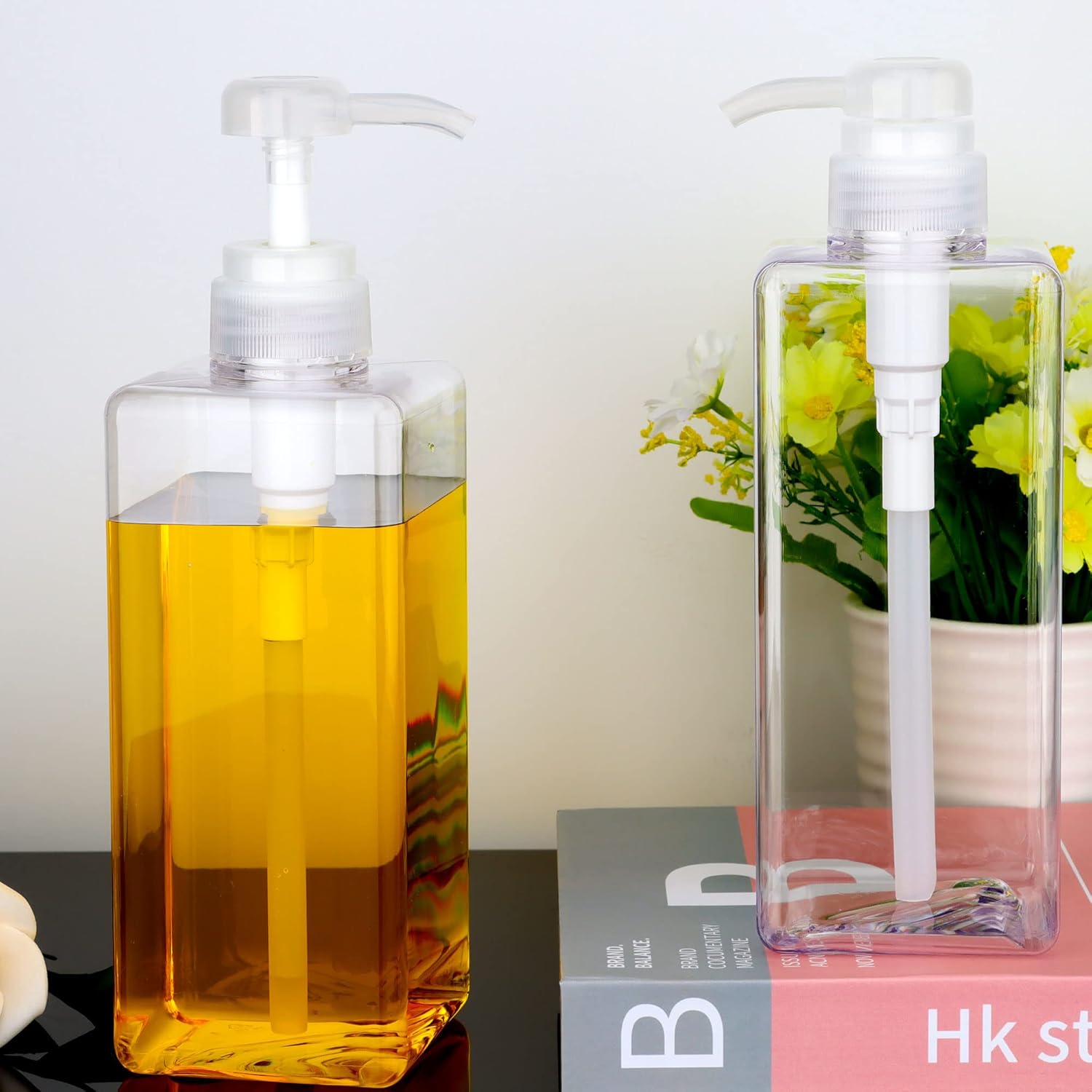 Pump Bottle Dispenser 22oz/650ml Jansburg 2Pack Refillable Square Plastic Lotion Dispenser Empty Lotion Pump Bottle for Essential Oil Lotion, Shampoo, Bathroom Travel Clear