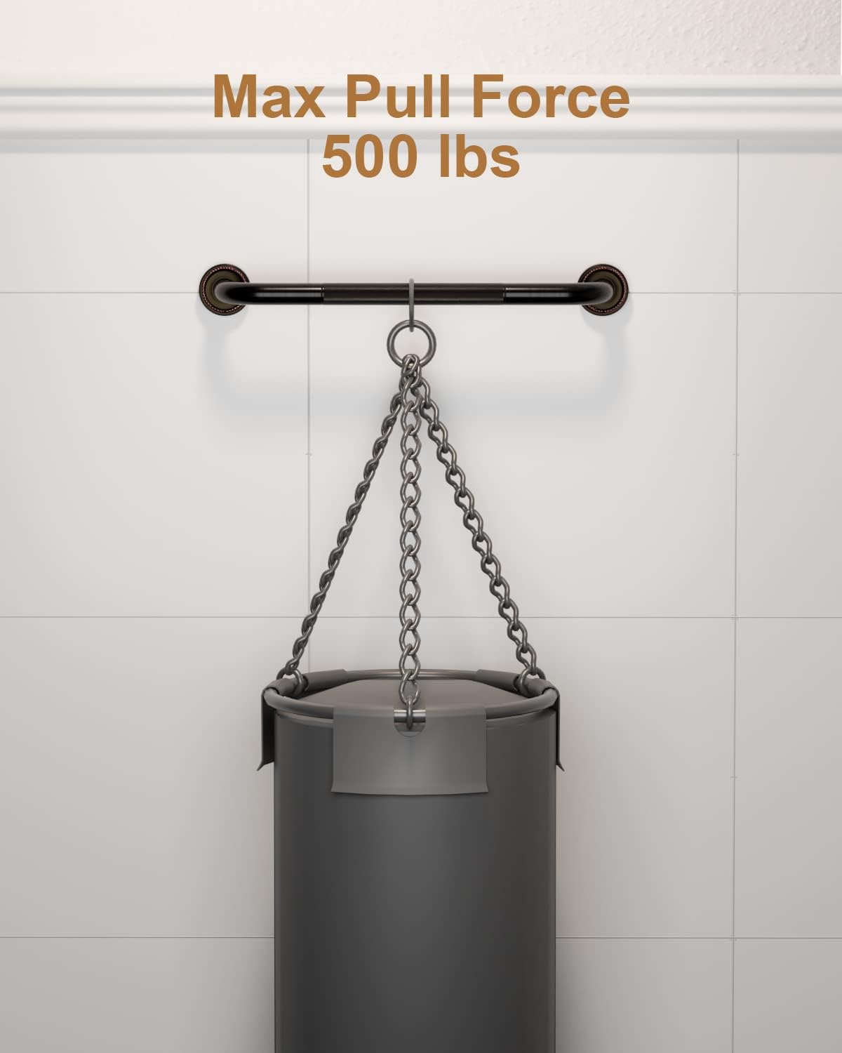 - Munzong 20 inch Bronze bathroom shower safety bars (1.0 inch diameter) with black knurled surface are able to support up to 500 lbs of pull force to provide a stable, reliable handhold; Made of anti-rust Brass for a lasting strength and quality.