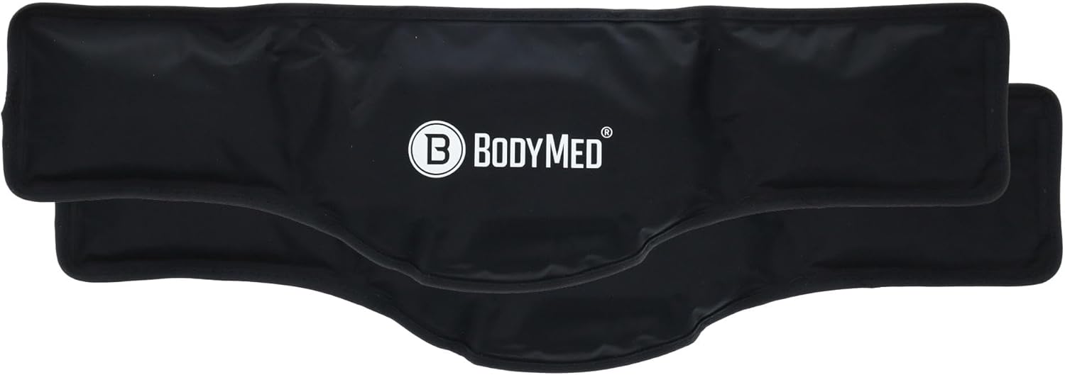 BodyMed Reusable Gel Ice Pack Cold Compress (2-Pack) for Neck - Professional Grade Cold Therapy for Injuries, Aches, Swelling, Bruises, Sprains - 21 in. x 6 in. (Neck Contour)