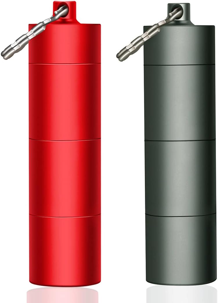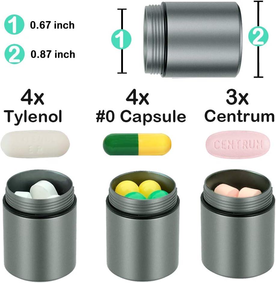- Military grade aluminum, unlike plastic pill cases, this metal pill holder is indestructible, Super Tough but Ultra-light Weight. With key ring, you can hang it on your keychain, bag or put it in your pocket, then you can easily access to your medicine at office, in the car or on travel.