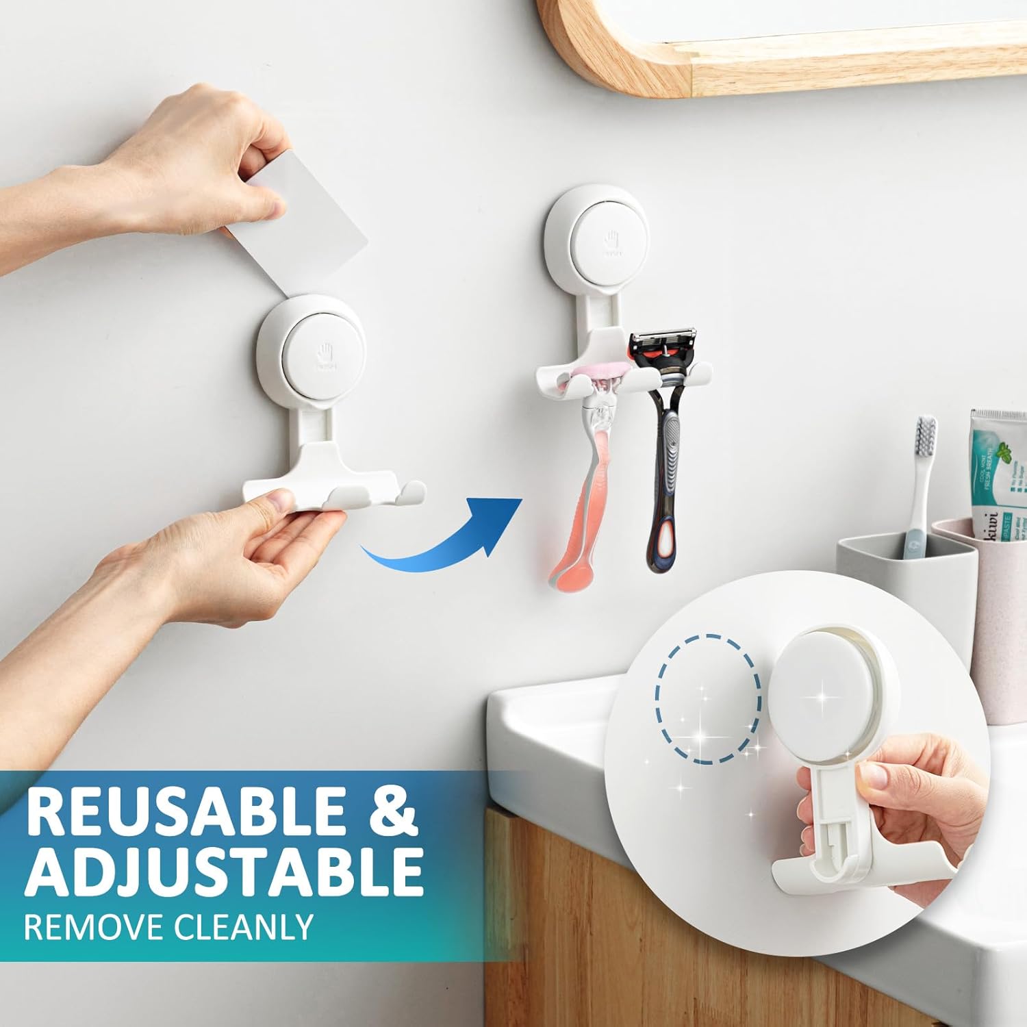 TAILI Suction Cup Razor Holder in Shower 2 Pack, Towel, Loofah, Shaver Holder for Bathroom Wall, Powerful Suction Cup Shower Hooks, Easy to Install and Reuse, White