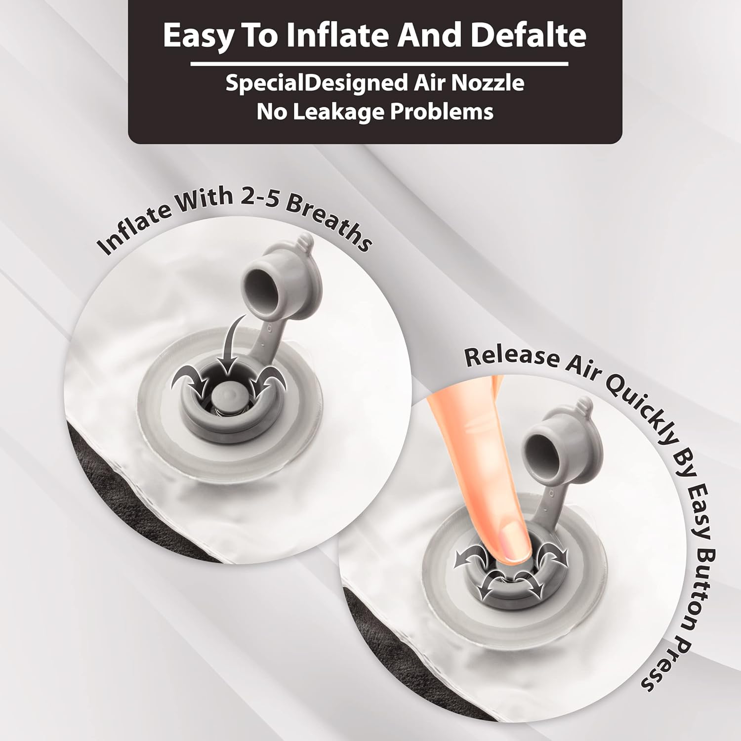 - HASSLE-FREE INFLATE DEFLATE: You don’t need to be a tech expert to use our inflatable travel pillow. It’s VERY EASY to blow up and it DEFLATES within seconds with a PUSH of a BUTTON. This flight sleep pillow is adjustable, meaning that it can be inflated to a level of firmness that’s most comfortable for you. It can be easily washed, so you always travel with a fresh, clean pillow