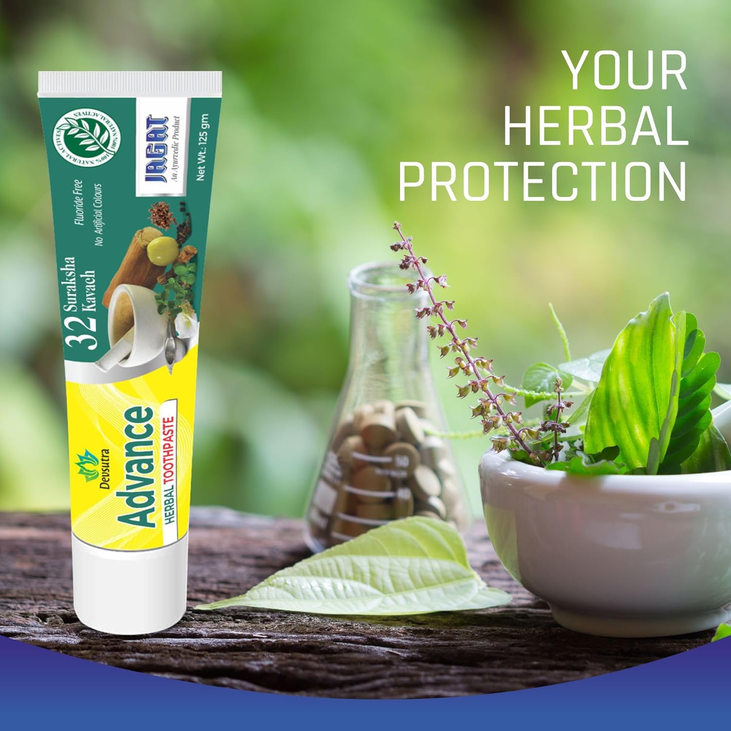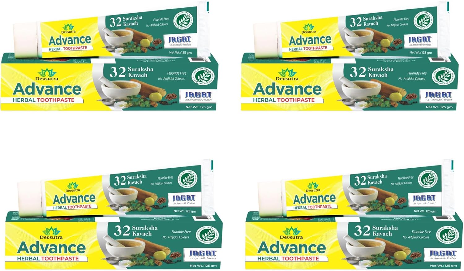 Jagat Devsutra Advanced Toothpaste | Doctor Recommended Ayurvedic, Organic & Herbal | 100% Natural Teeth Whitening, No Fluoride & Artificial Colors, Gum Cure, Vegan - Pack of 4