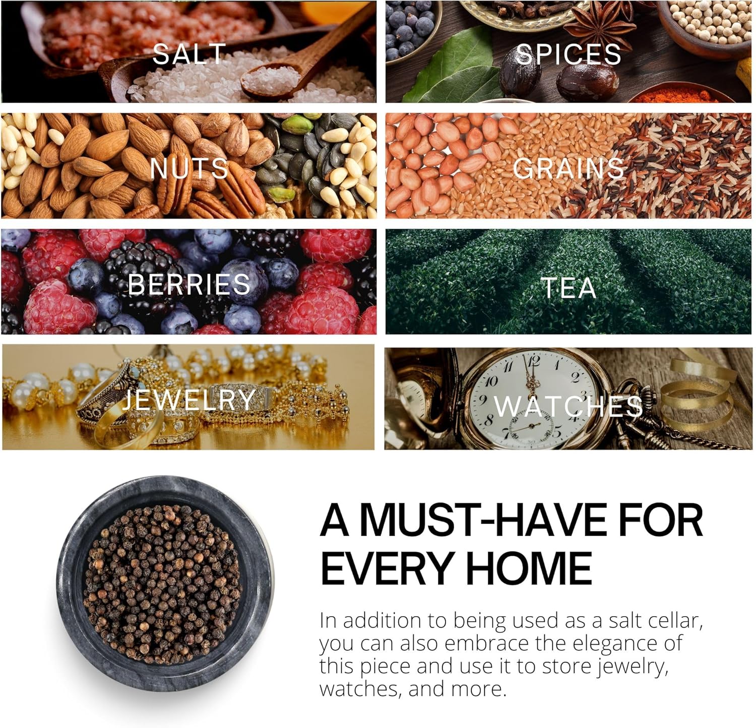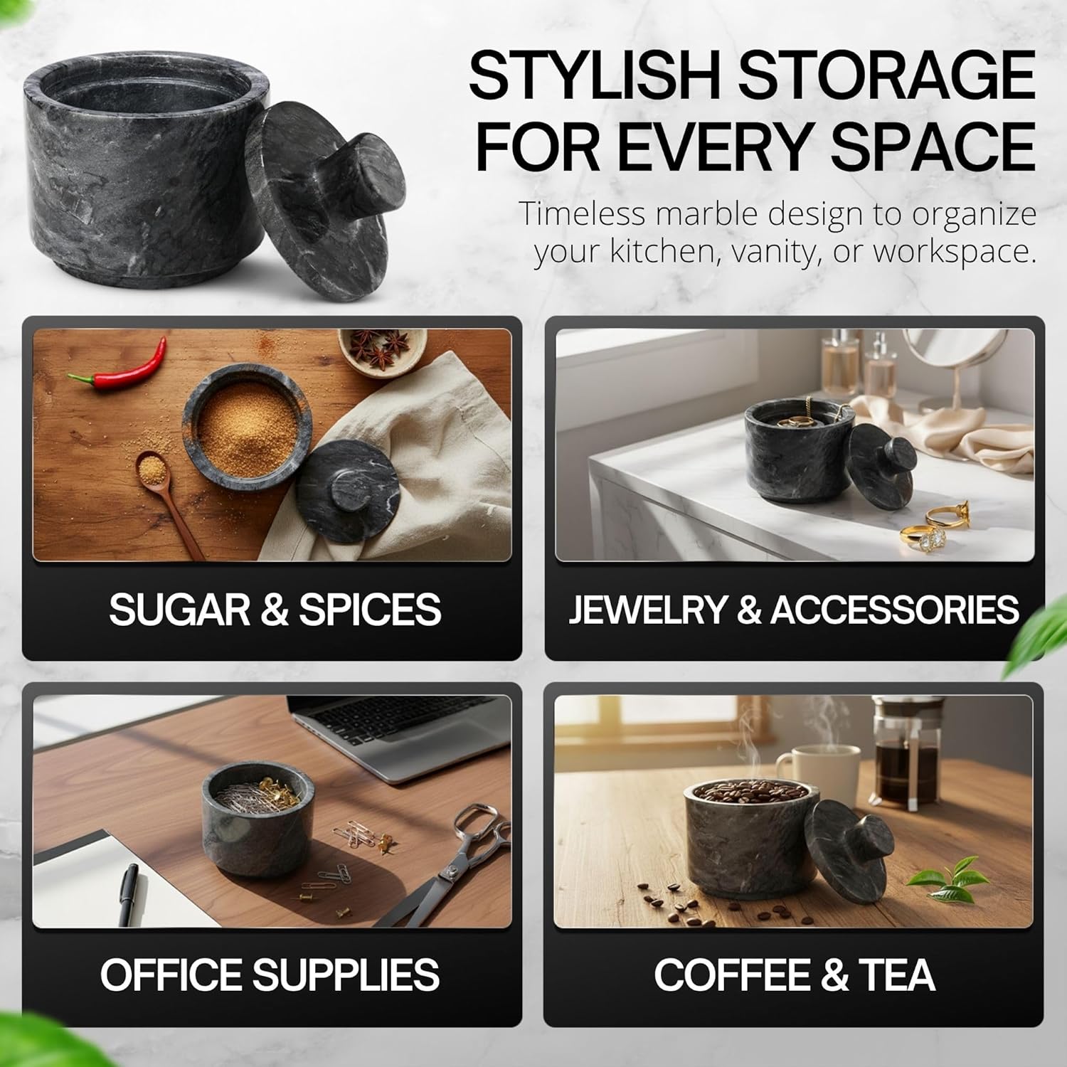 - Multi-Purpose Holder - Perfect for storing salt, spice, herb, seasoning, sugar, tea, coffee beans, bath salts, paper clips, rubber bands, pins, and more, making it a versatile addition to any space