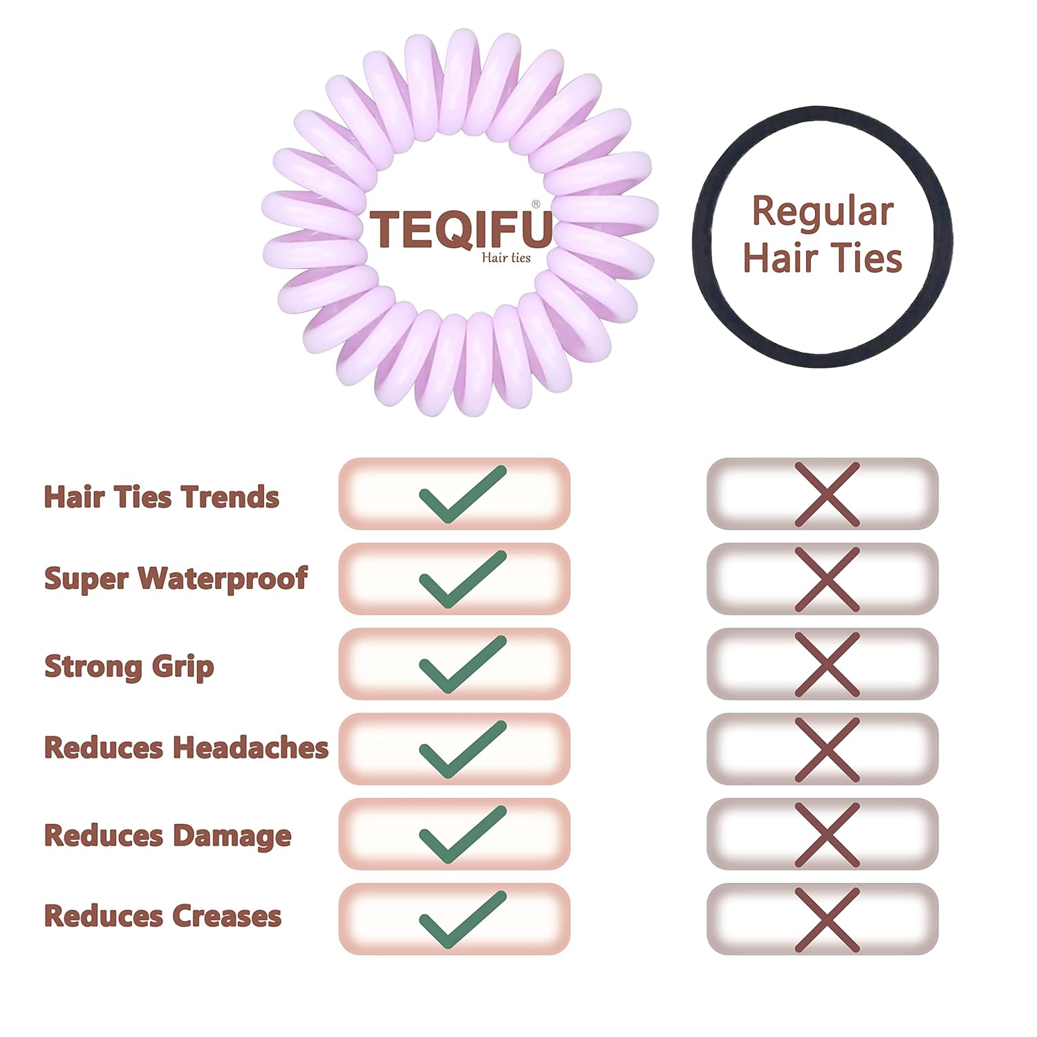- High Quality Material: This hair elastics for women made of waterproof skin-friendly TPU, which is soft, durable and flexible. The spiral hair ties not only fixed the hair firmly also not hurt for your hair.