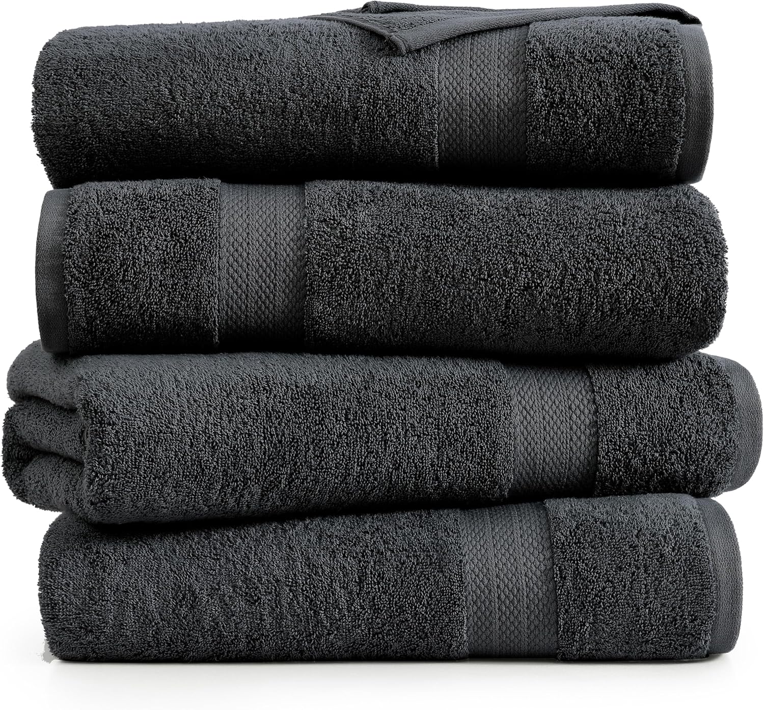 LANE LINEN 100% Cotton Bath Sheets Set of 4 (35"x66") - Ring Spun Cotton Extra Large Bath Towels Sets - Quick Dry, Soft & Absorbent Oversized Towel Set - Pre Shrunk, Fade Resistant - Black Towels