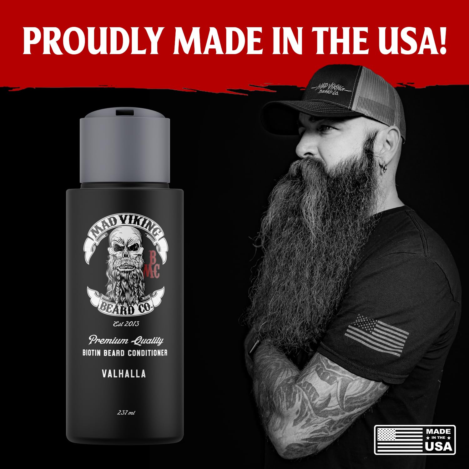 Mad Viking Valhalla Biotin Beard Conditioner – Restores, Moisturizes and Softens - Deep Conditioning and Reduced Frizz - Smooth Sandalwood & Vanilla Scent, Made in the USA - 8oz
