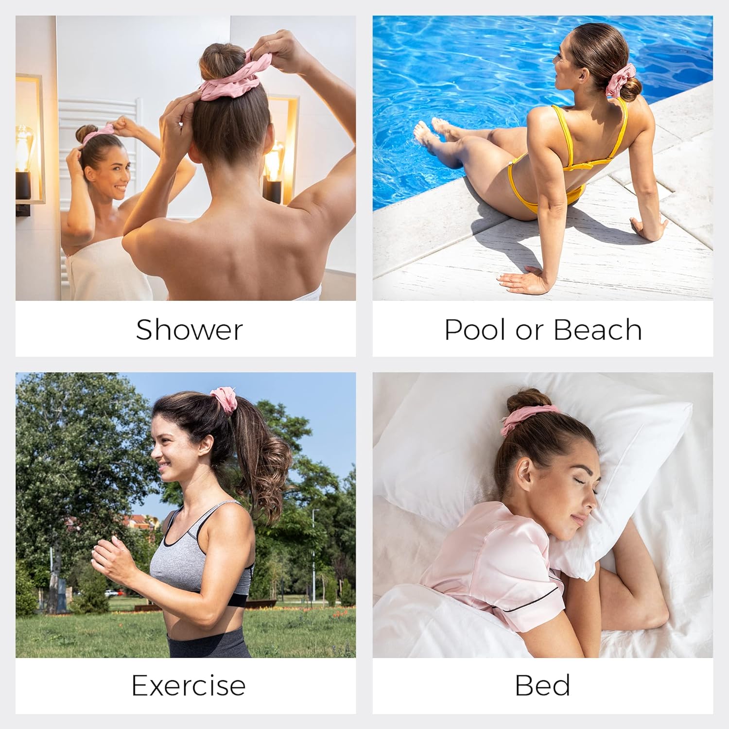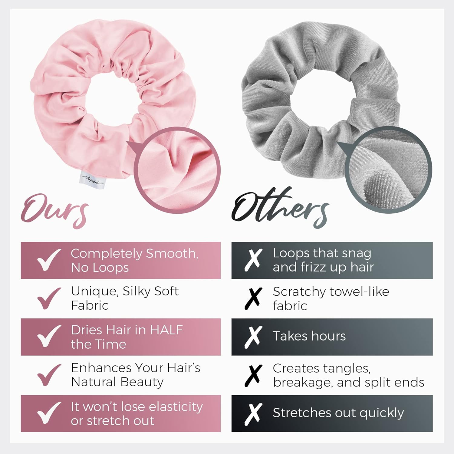 - THE POWER OF RAPID ABSORPTION - Experience the hair-drying miracle! Our silky smooth microfiber scrunchies are like thirsty sponges that gobble up all the extra moisture in seconds, stopping all that messing dripping. Whether you’re straight of the shower, pool, beach, or gym – The Perfect Haircare Towel Drying Scrunchies has you covered!