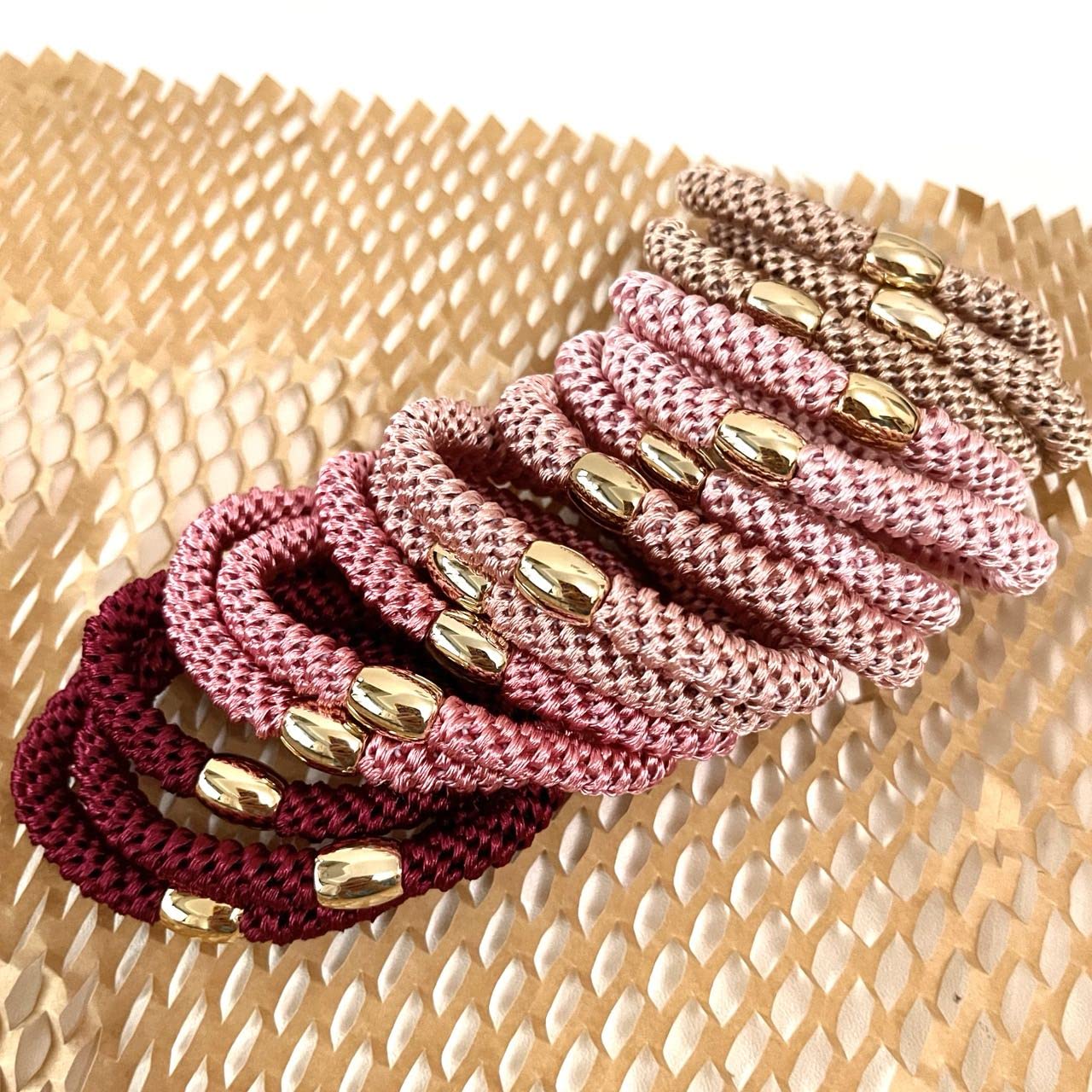 - 【Nice Material】The best hair tie for your hair:Our bracelet hair ties is made of plied yarn woven material with stylish ornamental Gold-plated bead accent,it can be seen that the strands have a high gloss, higher brightness than other materials, have a smooth feel and they are not easy to pilling.