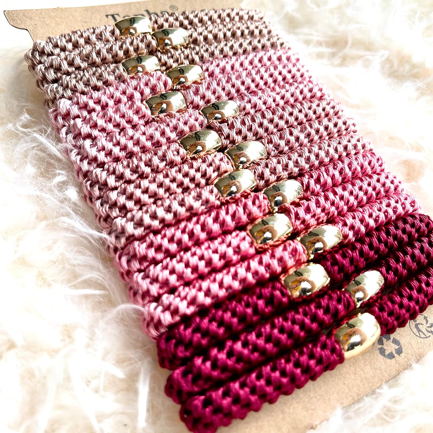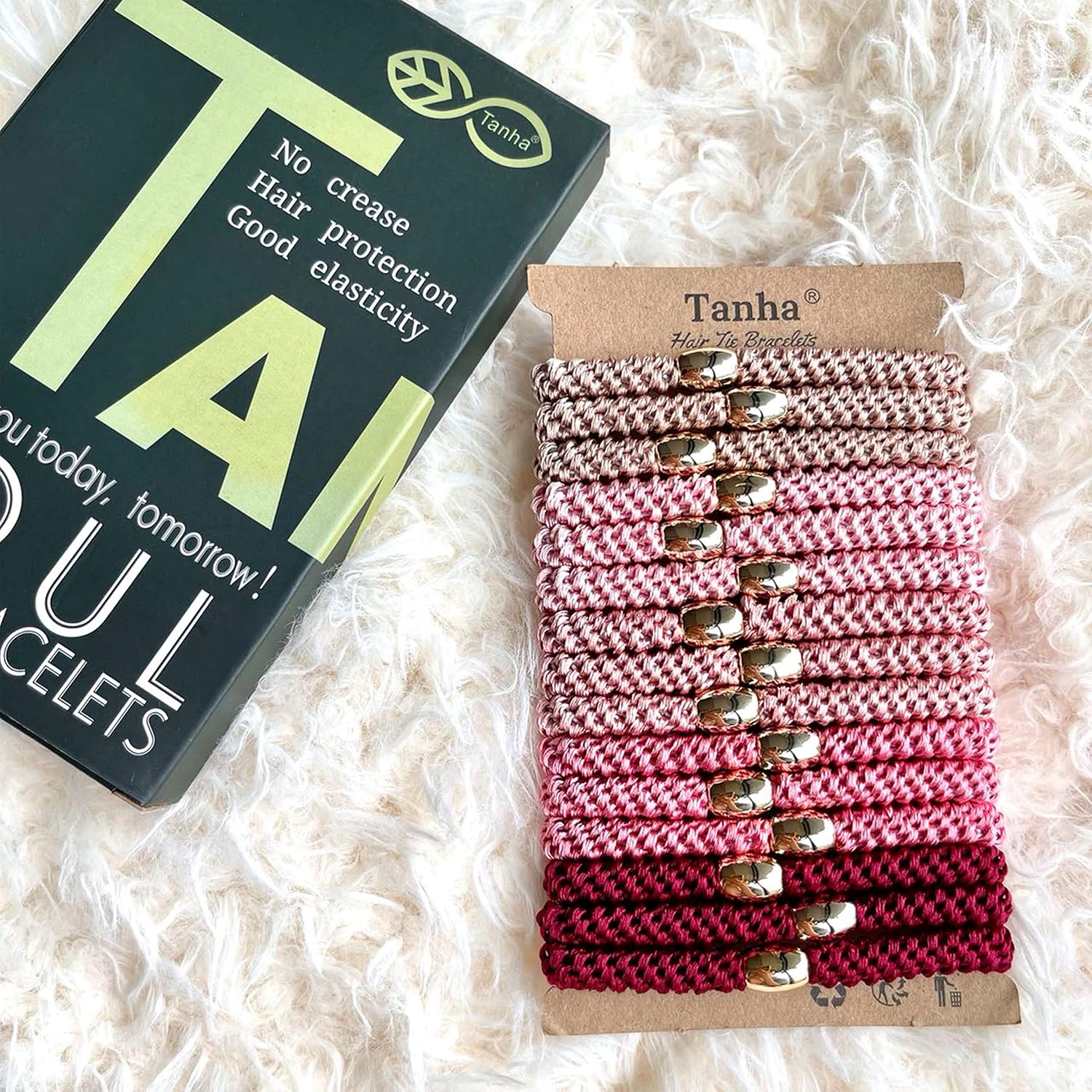 Tanha 15Pcs Hair Tie Bracelet,Hair Ties For Women Men,Ponytail Holders For Thick Hair,Strong Stretchy No Damage No Crease Hair Bands (Pink)