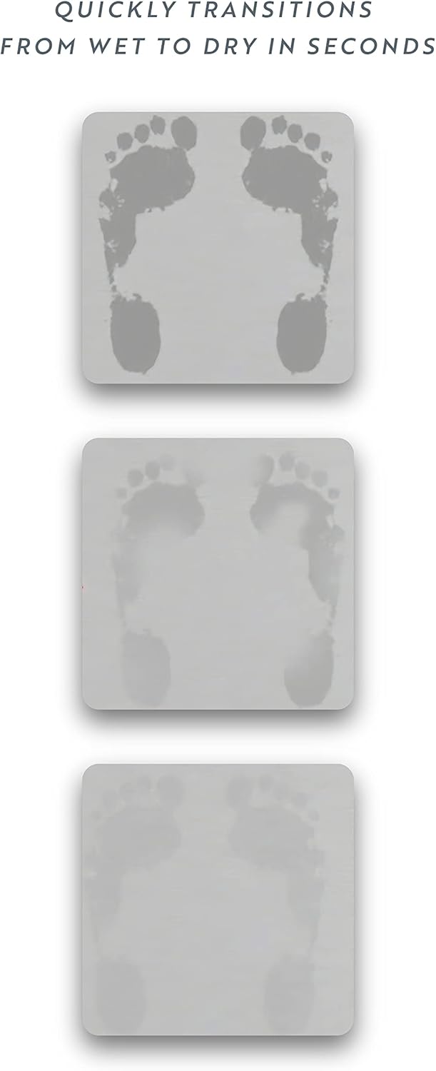 - NON-SLIP and SUPER ABSORBENT 23 x 15.5 inch mat. A natural diatomaceous earth bath mat holds exceptional absorbency and moisture wicking properties. Moisture goes away from the surface so quickly.