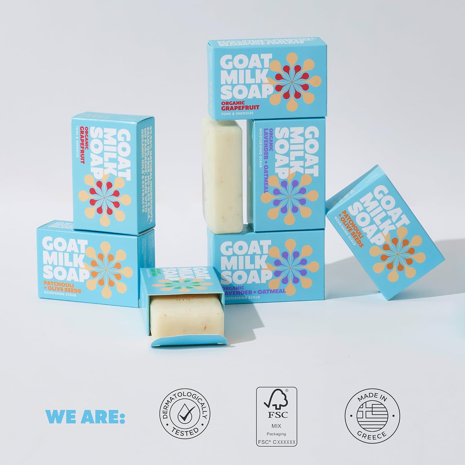 - Natural Ingredients: This set of 8 goat milk soap bars is Ecocert COSMOS natural. Meaning, the natural ingredients are responsibly sourced and that this soap for eczema doesn't contain additives like parabens or synthetic colorants.