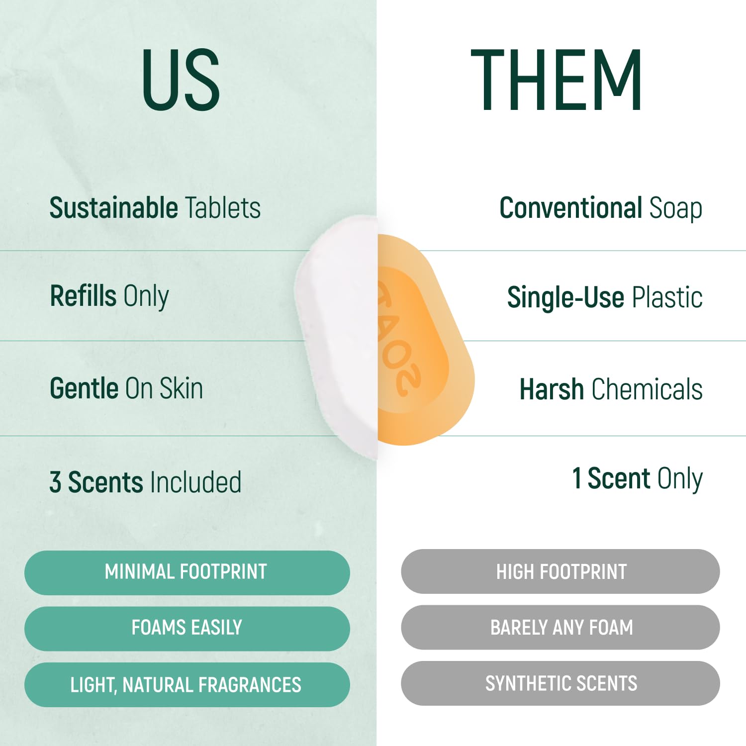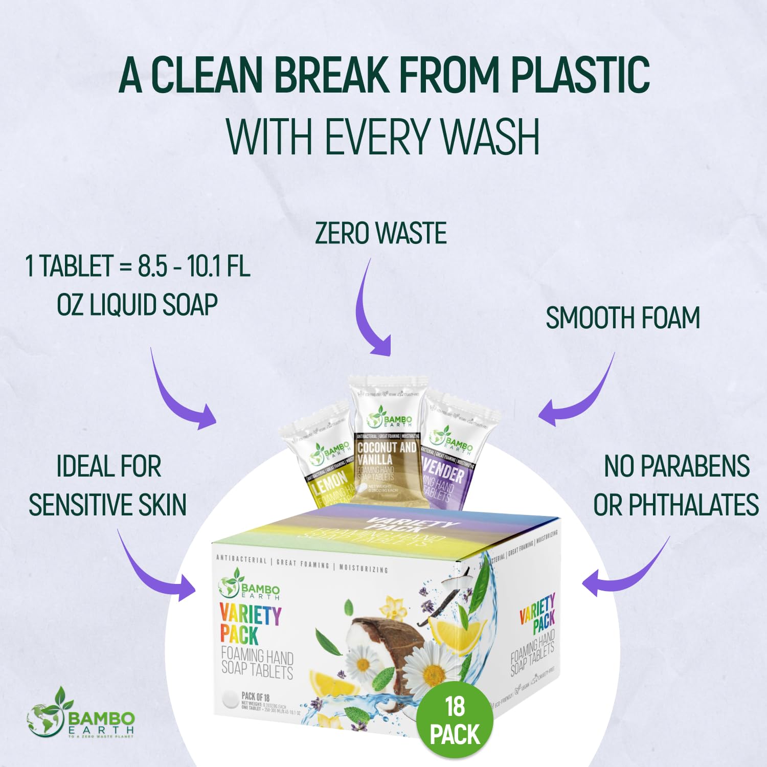 18 Pack Natural Foaming Hand Soap Tablets - Soft Moisturizing Handwash Tab Refills - 1 Tablet = 9 Oz Liquid Wash Foam Handsoap - Eco-Friendly Softsoap Refill Tabs (18 Variety Pack)