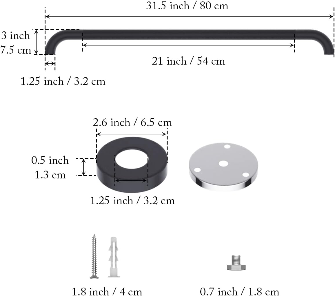 - Munzong 32 inch knurled bathroom shower grab bars (1.25 inch diameter) are able to support up to 500 lbs of pull force to provide a stable. Made of anti-rust stainless steel. Screw Length 1.6 inch