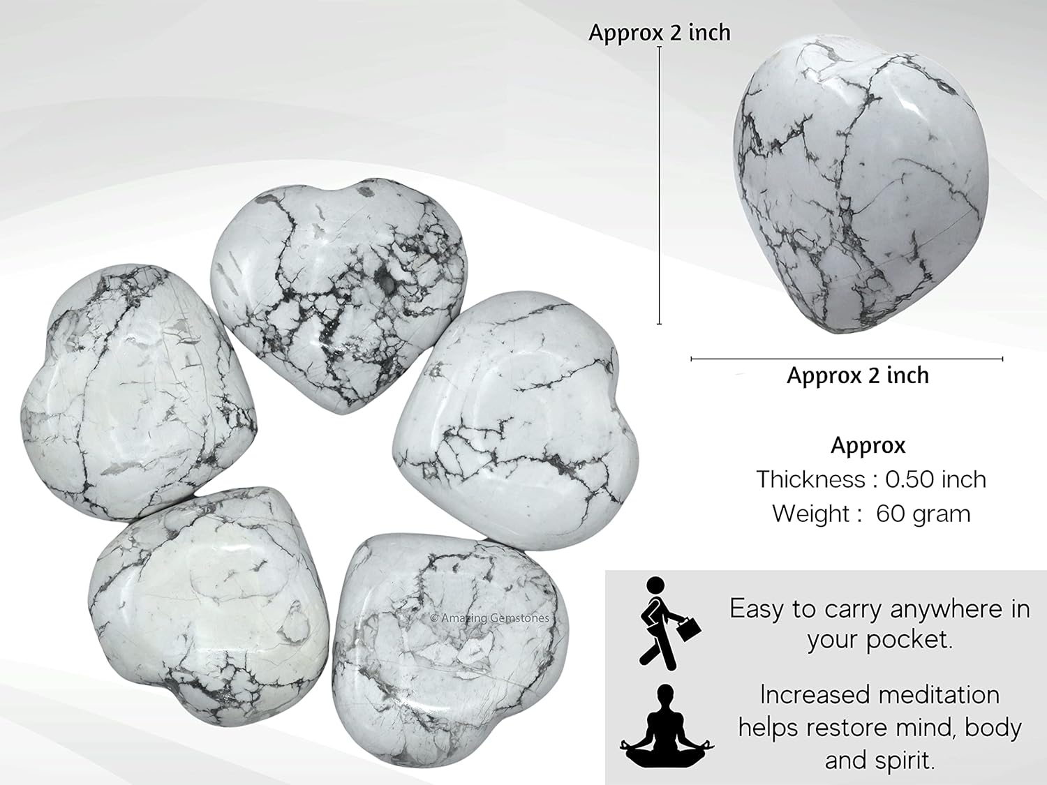 - Howlite Crystal Heart Palm Worry Stones are polished heart shaped stones that can be used for Back, Neck, Face and Feet Massage therapy, Chakra Balancing, Reiki Healing, Crystal Grid Meditation and many other esoteric healing practices.