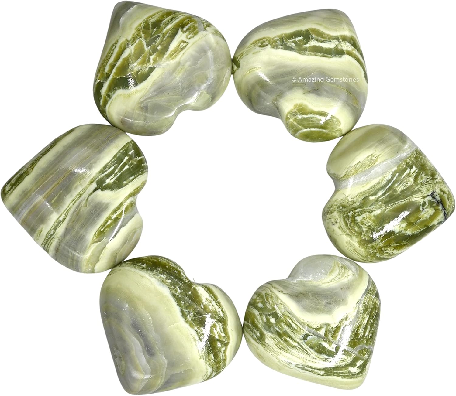 Amazing Gemstone Serpentine Crystal Heart Palm Stone - Pocket Massage Worry Stone for Natural Body Chakra Balancing, Reiki Healing and Crystal Grid
