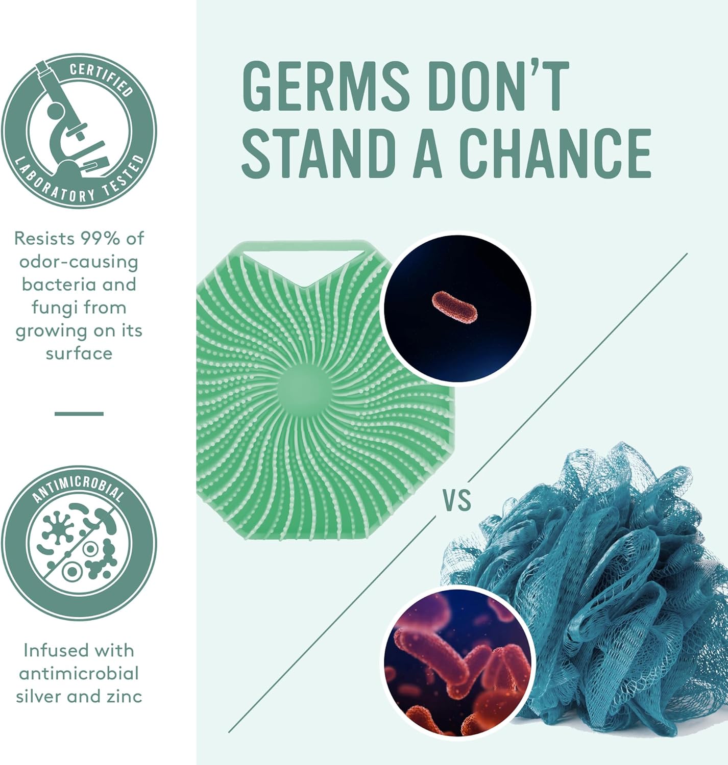 Sud Scrub® Antimicrobial Silicone Body Scrubber, Exfoliating Body Scrubber for Sensitive Skin, Eco Friendly Shower Scrubber for Body, Silicone Body Brush for Showering, Mint