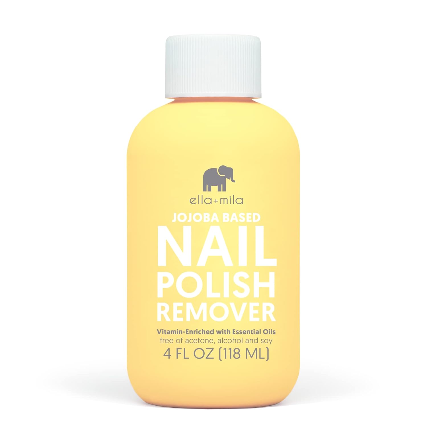 ella+mila Jojoba Nail Polish Remover Non-Acetone Nail Polish Remover - Non-Toxic Fingernail Polish Remover - Enriched With Jojoba oil & Vitamins (4 fl oz) Yellow