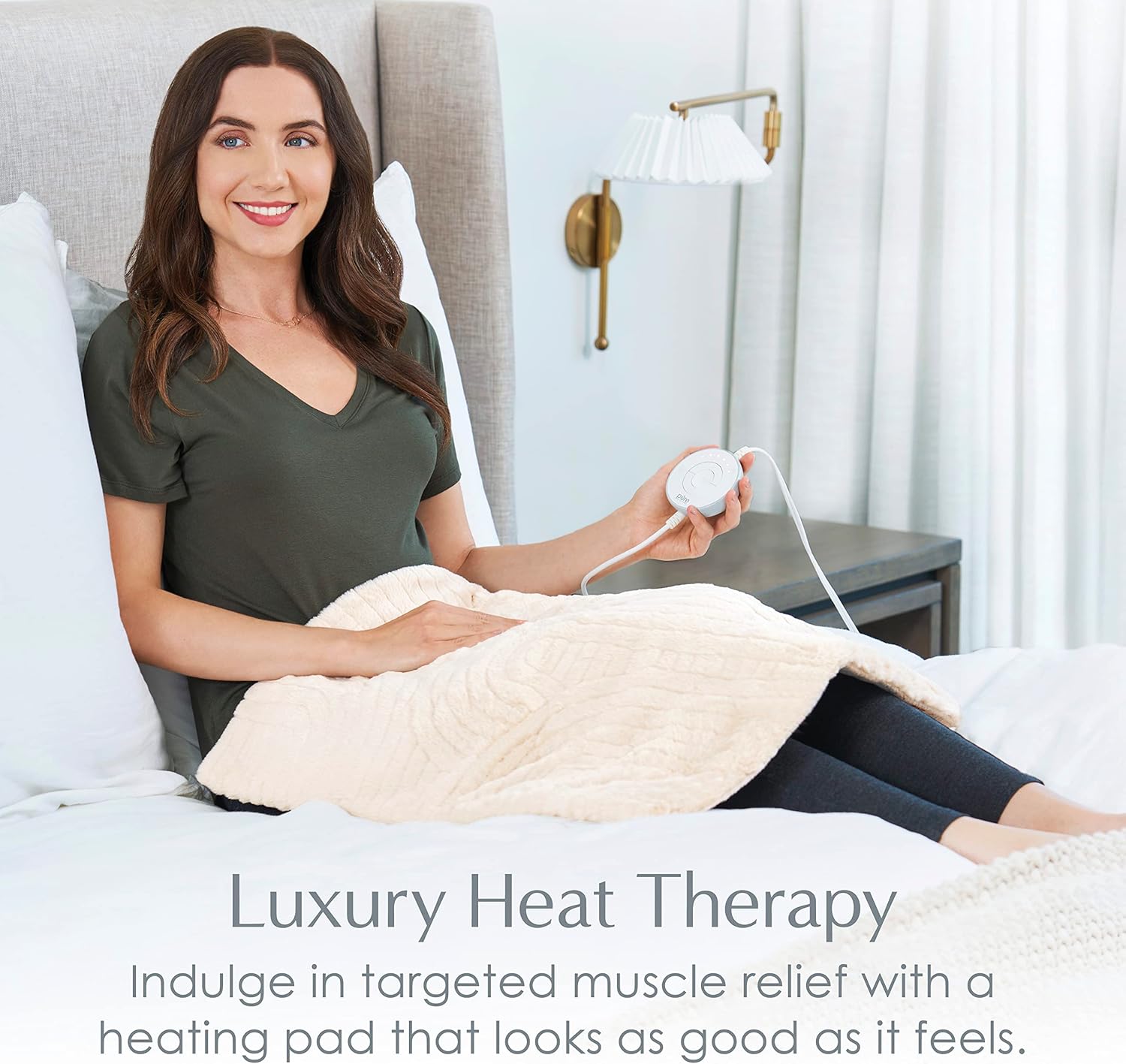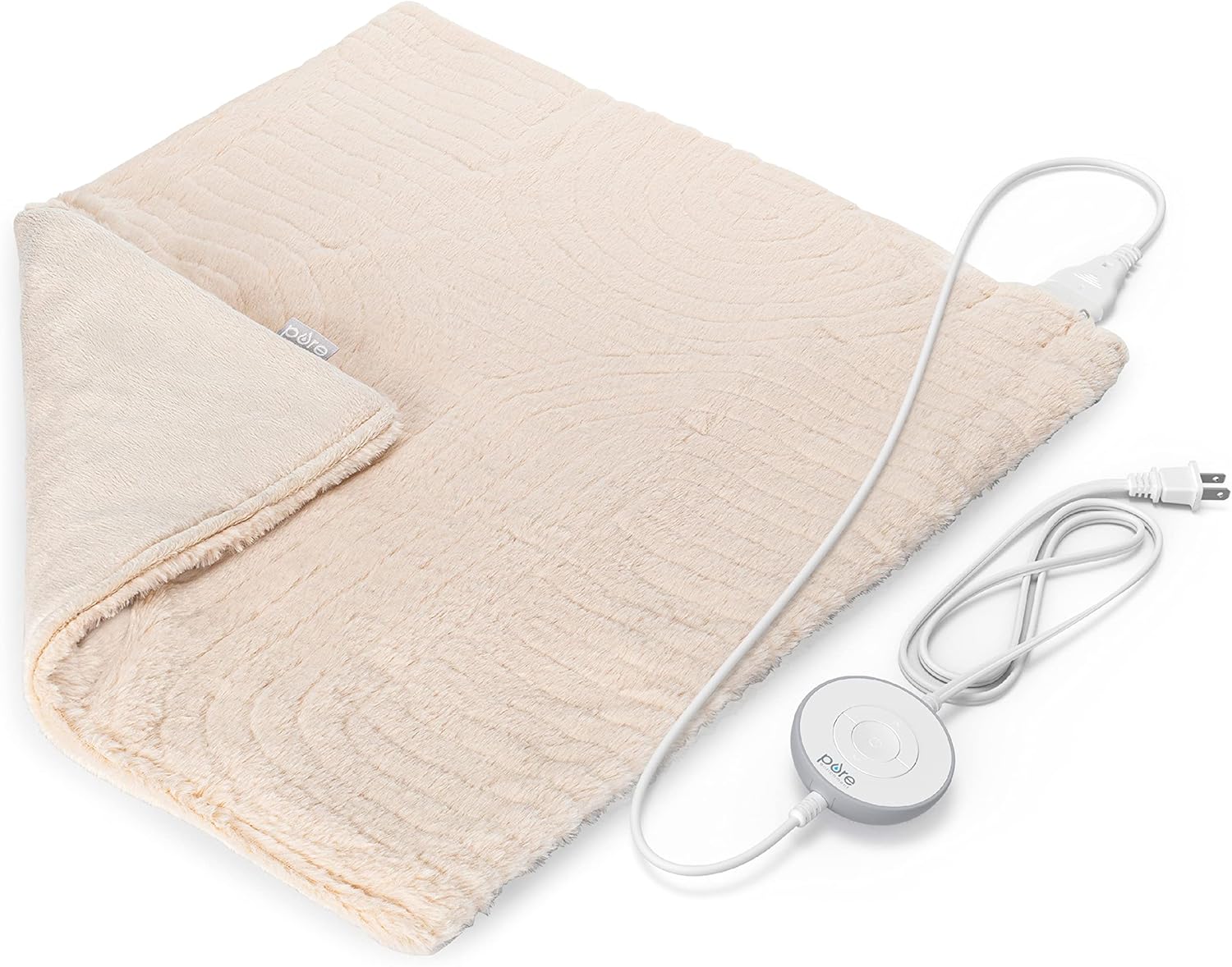 Pure Enrichment® PureRadiance™ Ultra-Wide Luxury Heating Pad for Cramps & Back Pain Relief, Patented Design, Soft Faux Fur & Micromink, 6 Heat Settings, Machine Washable, Large, 20”x24” (Golden Sands)