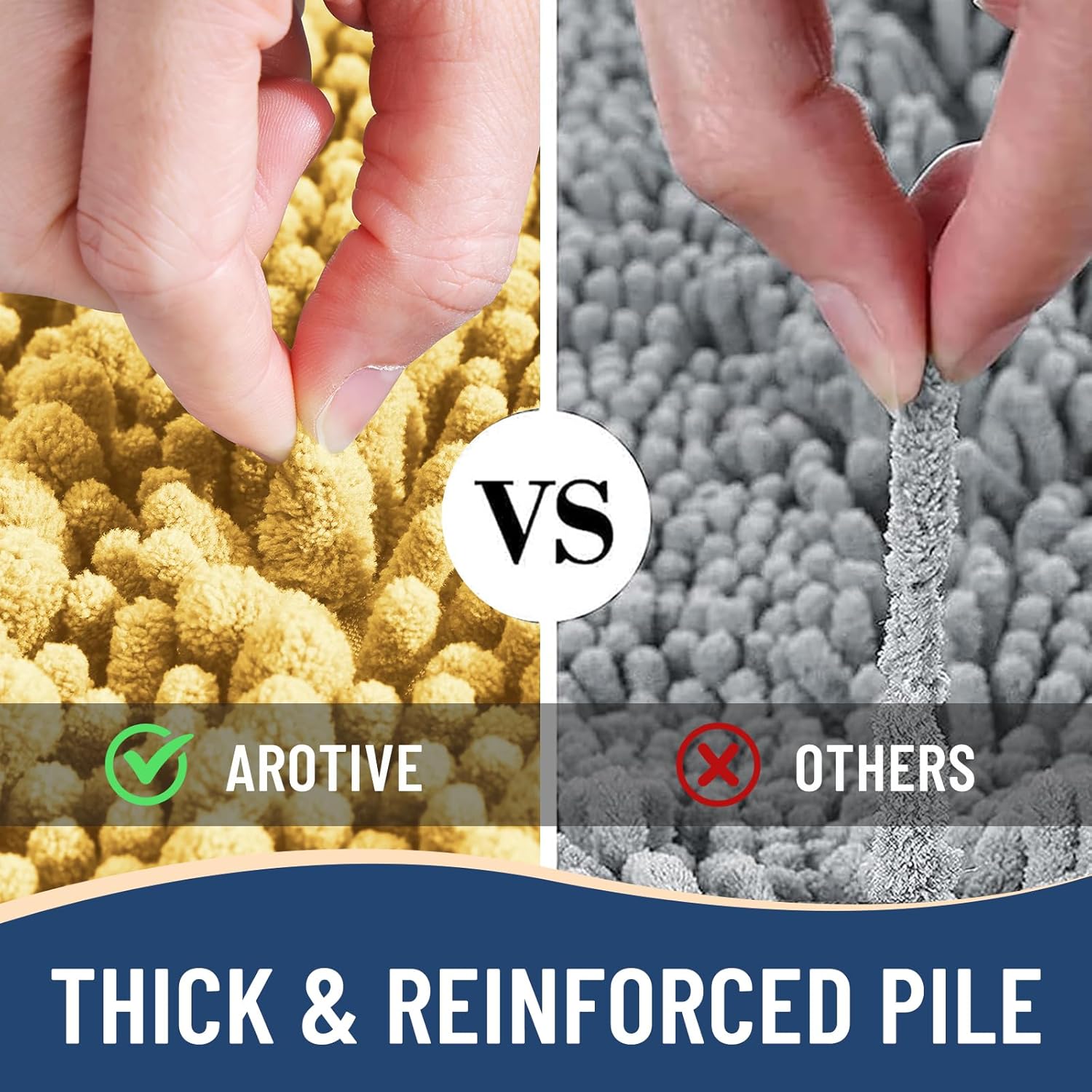 Arotive Luxury Chenille Bathroom Rug Mat, Extra Soft Thick Absorbent Shaggy Bath Rugs, Non-Slip Machine Wash Dry, Plush Bath Mats for Bathroom, Shower and Tub, 24x16, Yellow