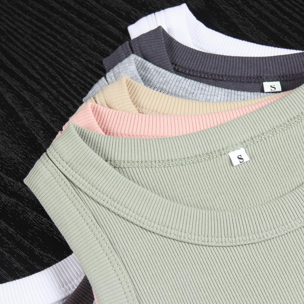 GEMBERA Womens Sleeveless Racerback High Neck Casual Basic Cotton Ribbed Fitted Tank Top