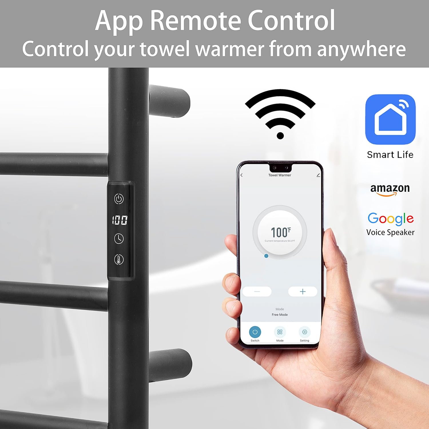 - [APP CONTROL & SMART SCHEDULING]: Turn the towel warmer on or off from anywhere in the world with your smartphone using the SmartLife app. Set the towel warmer to automatically turn on/off as needed.