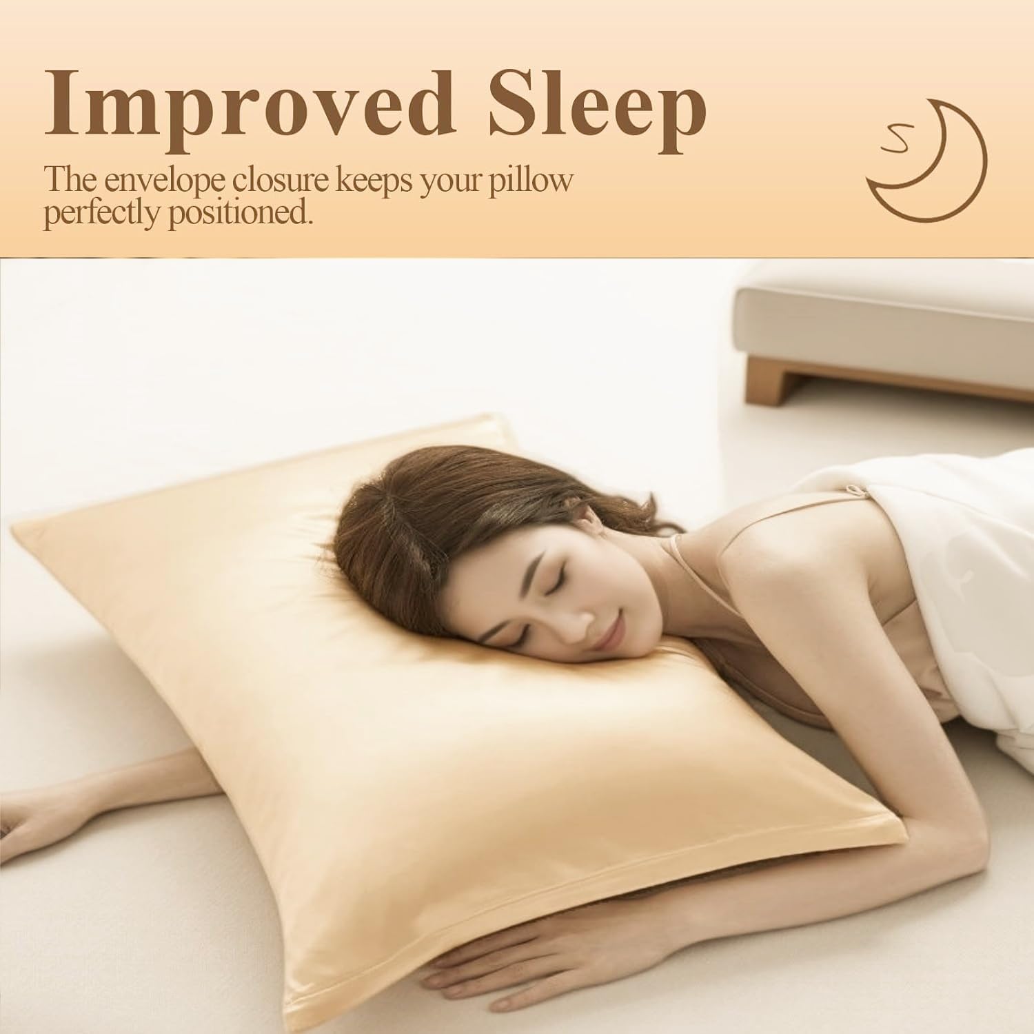 Juwenin Bedding,Super Soft and Luxury Silky Satin Pillowcase with Zipper (Silky Satin Pillow Case for Hair) Set of 2 (Champagne, Standard(20''x26''))