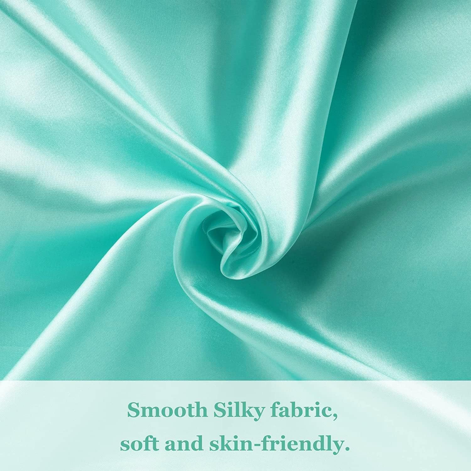 Juwenin Bedding,Super Soft and Luxury Silky Satin Pillowcase with Zipper (Silky Satin Pillow Case for Hair) Set of 2 (Aqua, King(20''x36'))