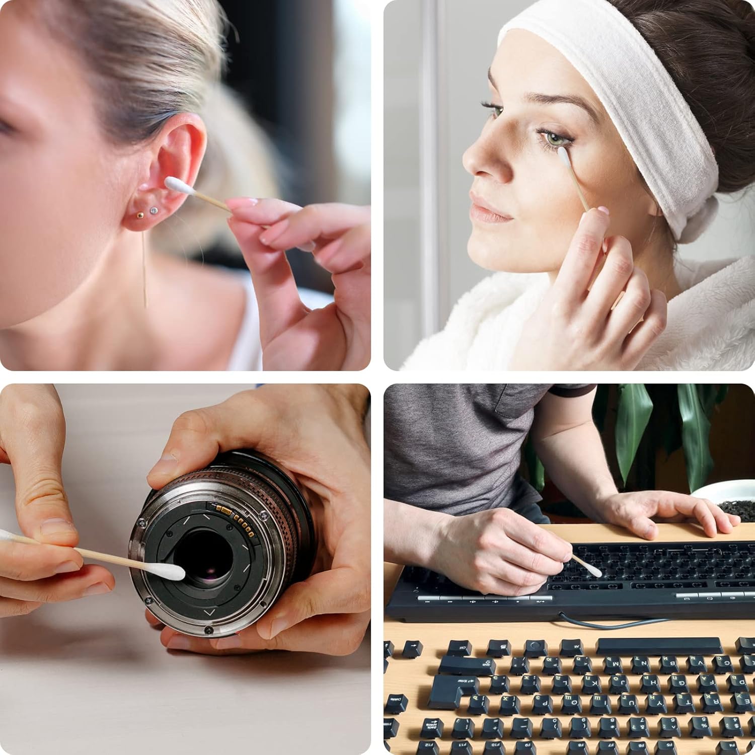 - Natural Cotton Swabs: Crafted from 100% pure cotton; soft, absorbent, and safe for all skin types; ideal for ear cleaning, makeup application, and delicate tasks
