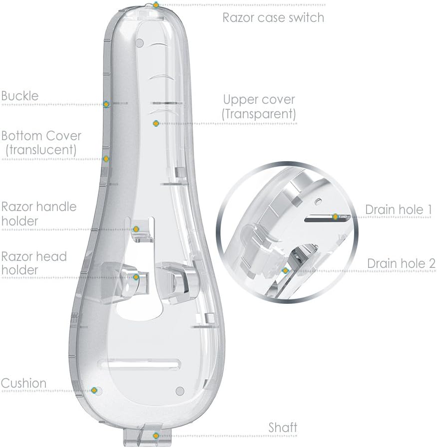 - Keep Razor Clean & Safety: This Razor Travel case is made of durable plastic and is of good quality, and since it's clear, you can still admire it even when it's stored, Case bottom designed with hole for water to quickly remove extra water and keep the razor and bag dry, premium housing can withstand impacts or scratch and makes it easily survive everyday usage, It has a holder inside that keeps your razor snug and from shaking around. Every single detail we made uniquely is to ensure to present the best quality of razor travel case in the market