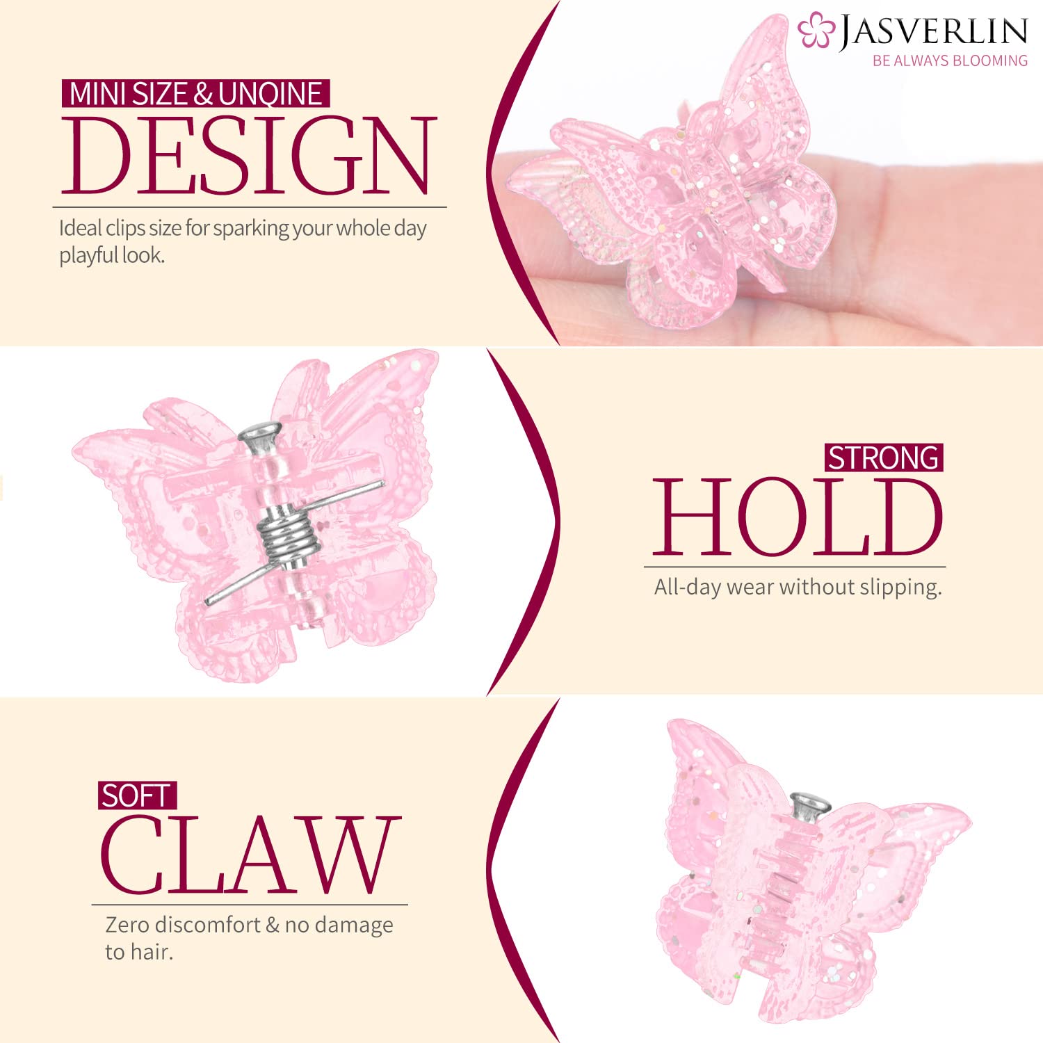 - Superior Quality Shine: Embrace 90s style with these JASVERLIN BUTTERFLY CLIPS, crafted from premium plastic and metal. Designed for all hair types, these durable, non-slip, anti damage and rust-resistant clips add a touch of shine to any occasion