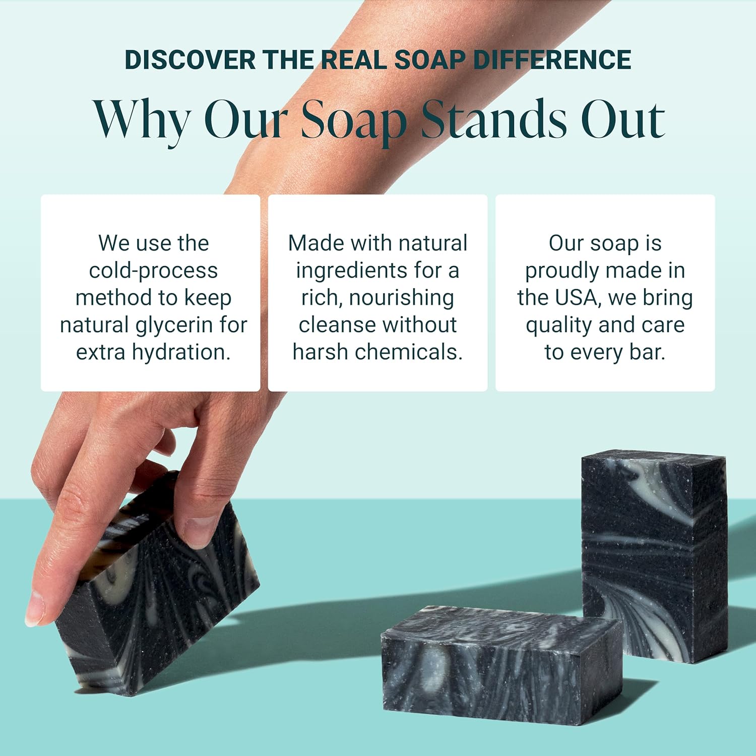 Handmade Soap, All Natural Soap for Women & Men, Hand, Bath & Body Natural Bar Soap, Vegan, Palm Oil Free, Made in USA with Shea Butter + Essential Oils, Charcoal Mud Tea Tree, 3 Bars