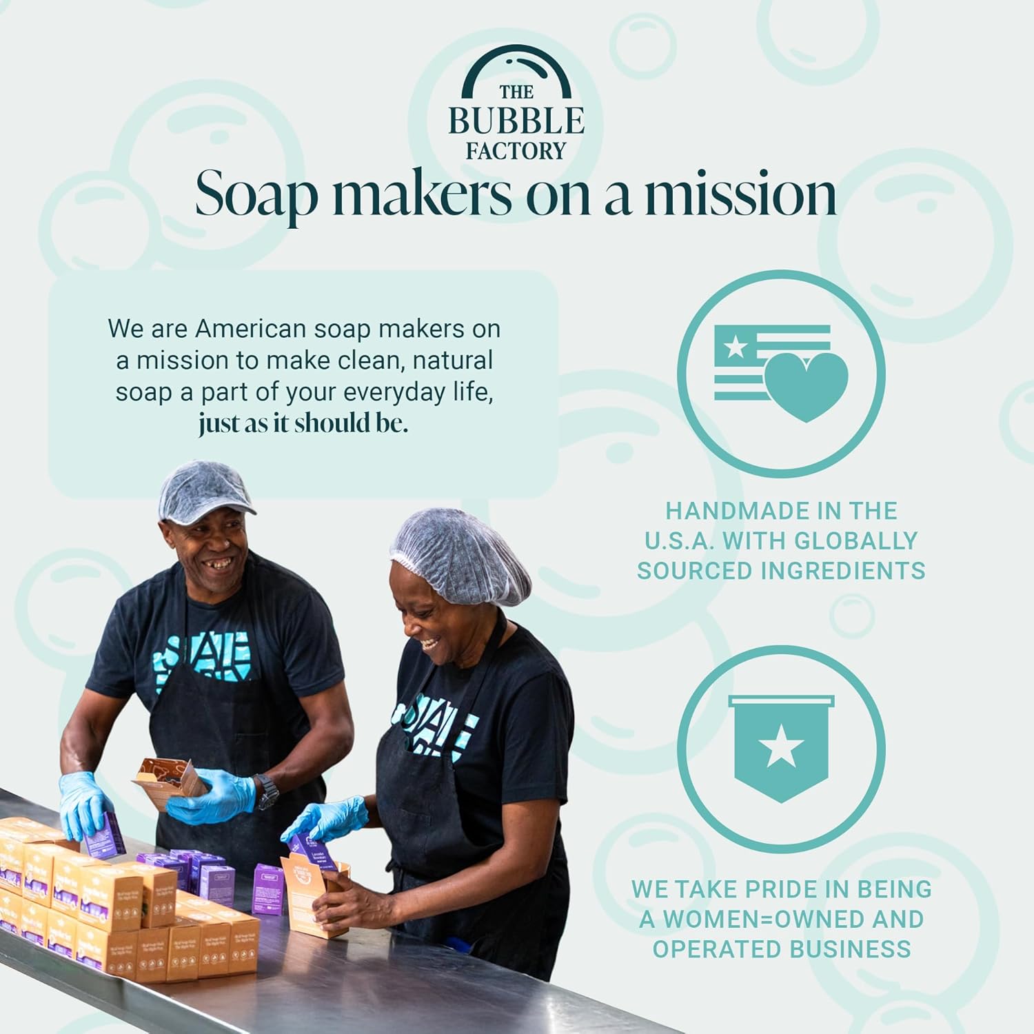 The Bubble Factory Handmade Natural Bath & Body Soap Bar, Vegan, All-Natural, Palm Oil Free, Made in USA with Shea Butter + Essential Oils, Lavender Rosemary, 3 Bars