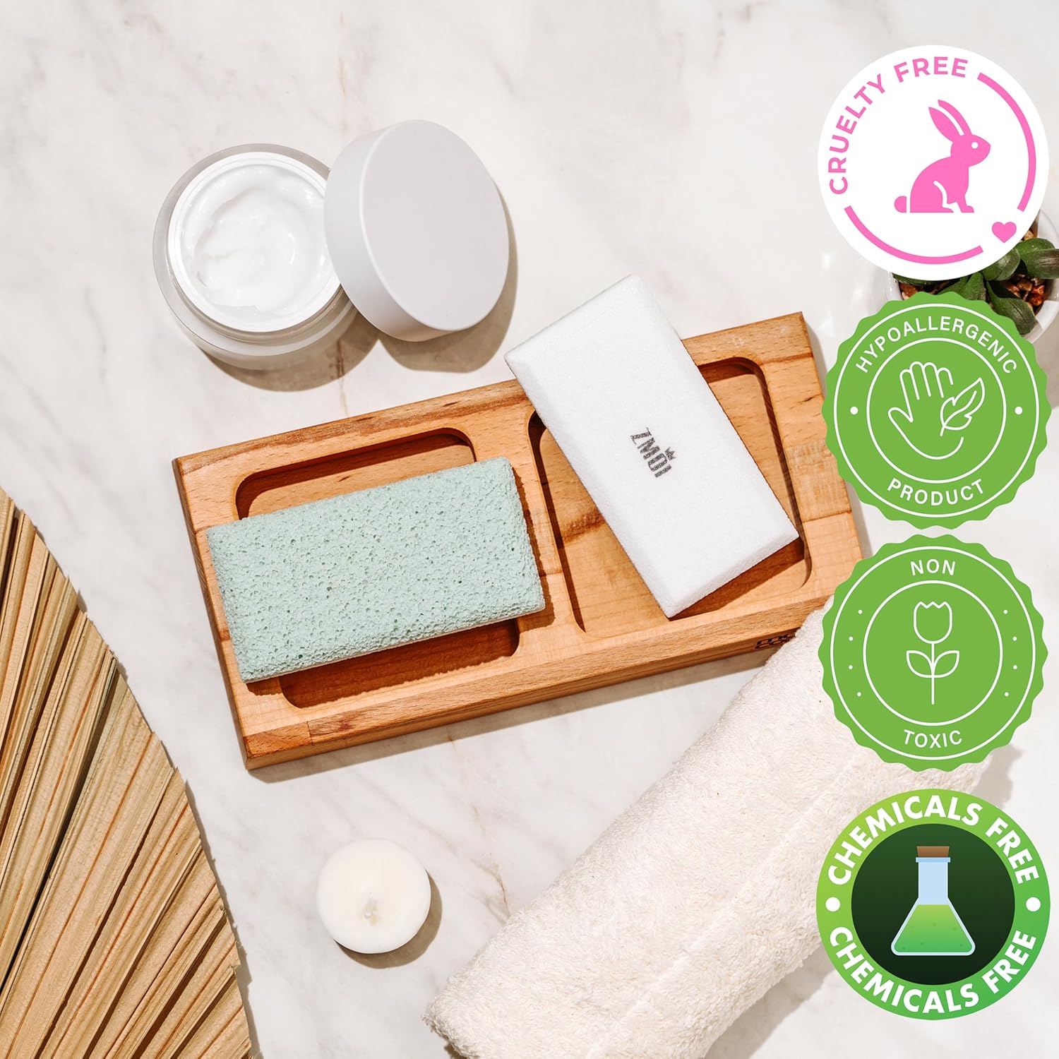 - Dual-Sided Skin Exfoliator – This is a unique pumice stone for women and men in that it features a rough exfoliation side to remove hard, dry, or thick skin patches and a soft fine pumice stone side that lets you buff and polish it to a natural vibrance.