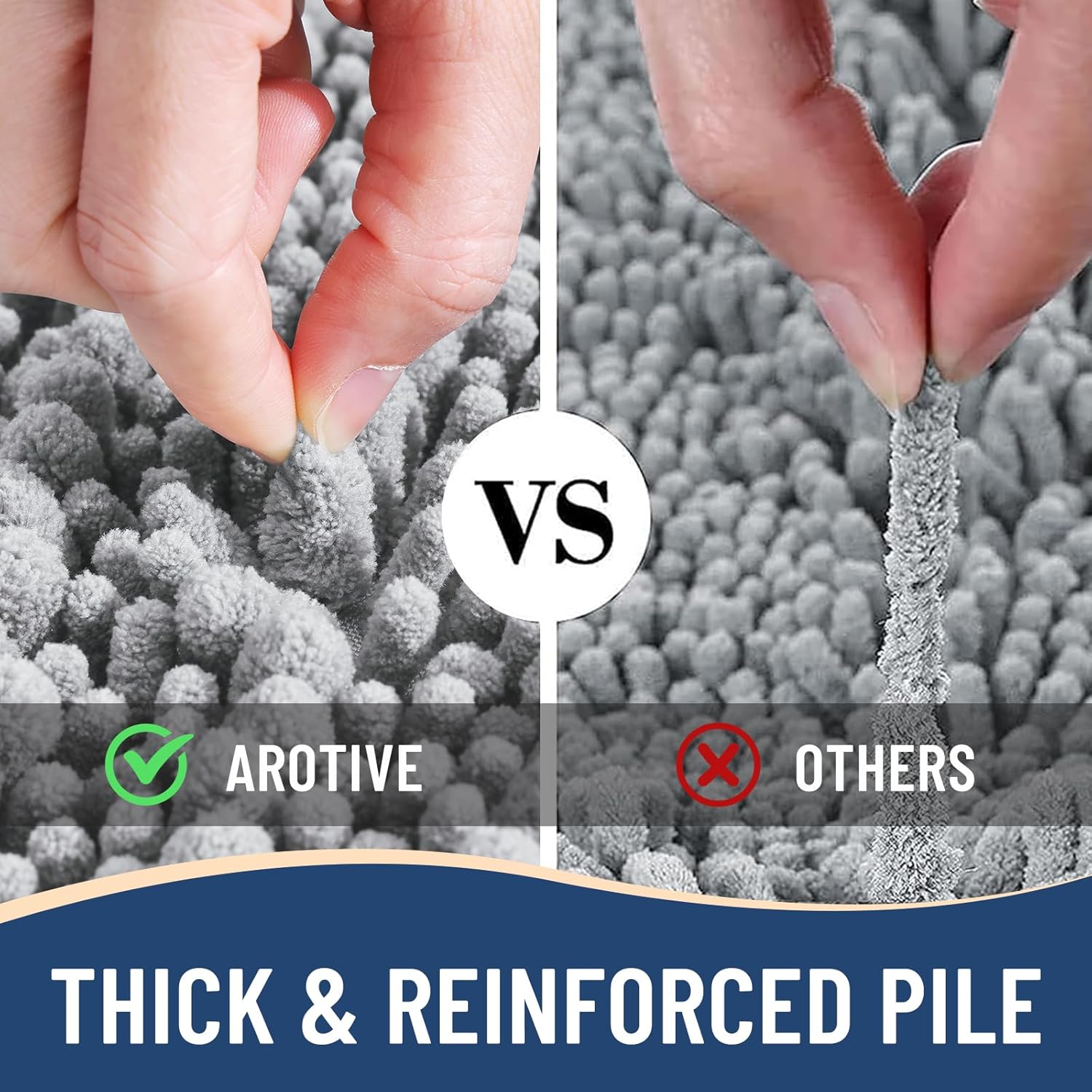 - Non Slip Backing: The Arotive chenille bathroom rugs are equipped with a non-slip bottom made of sturdy mesh PVC material, ensuring the bath mat remains in place and stops shifting or skidding. WARNING: Place mat on CLEAN DRY SMOOTH FLOOR only. Keep bottom of mat dry. Before using bath carpet, test with foot to ensure it doesn't move