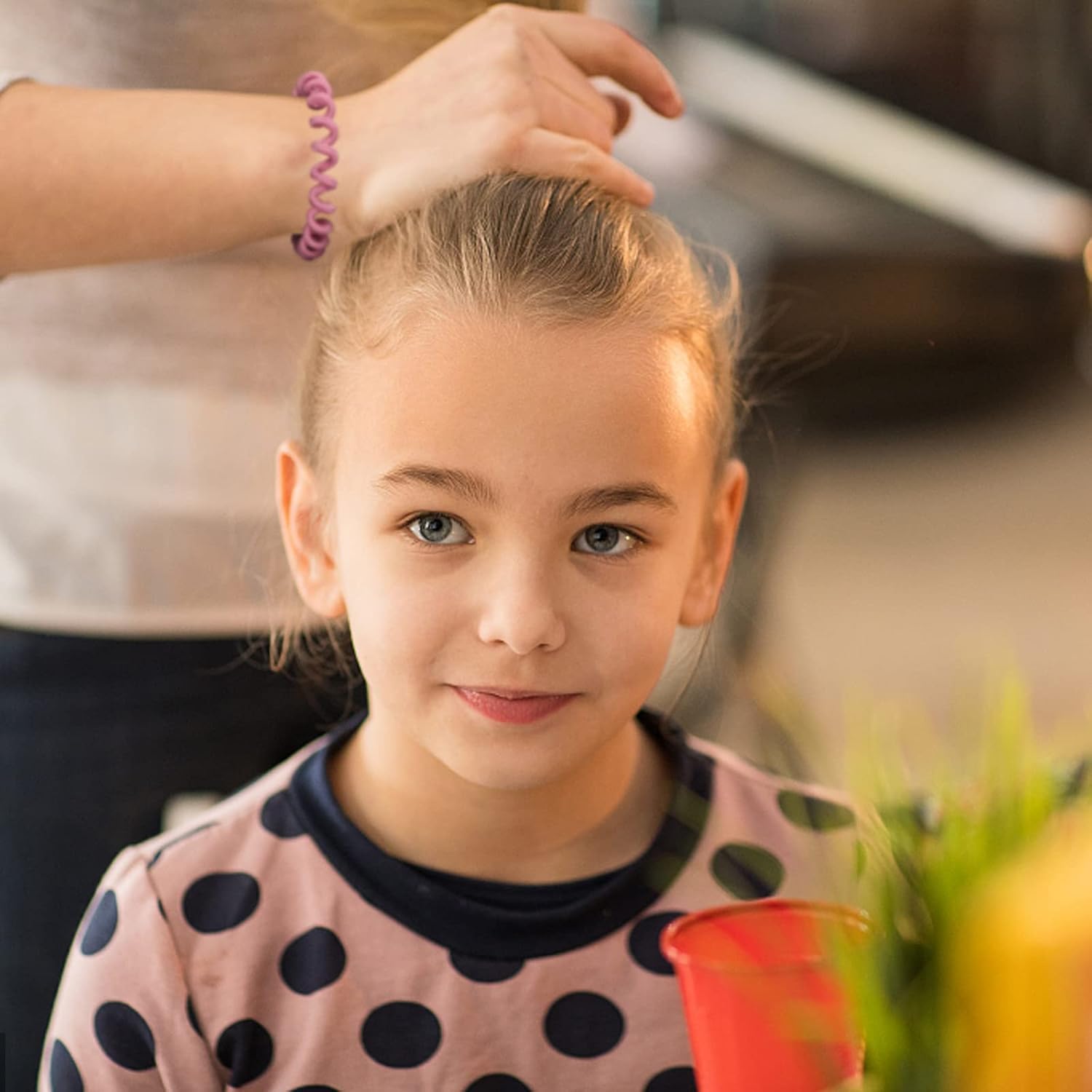 - High Quality Material: This hair elastics for women made of waterproof skin-friendly TPU, which is soft, durable and flexible. The spiral hair ties not only fixed the hair firmly also not hurt for your hair.