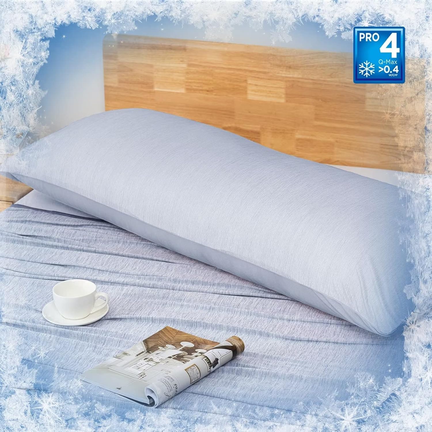 HOMFINE Cooling Pillowcase Body Size - Double Side Q-Max 0.439 Cooling Fiber for Pillow Protector, Breathable Long Cold Pillow Cover for Hot Sleeper Night Sweat, Hidden Zipper, 1 Pack (20"x54", Blue)